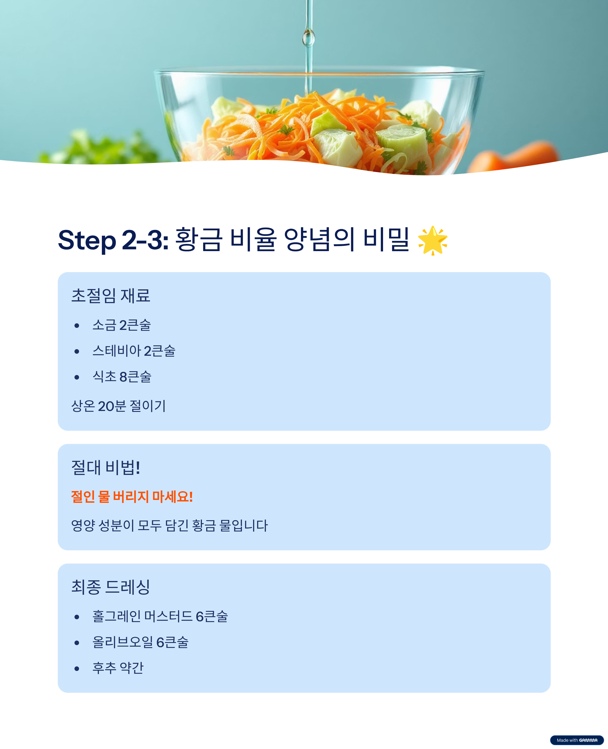 - 보관: 소독한 유리병에 담아 냉장 보관하세요.