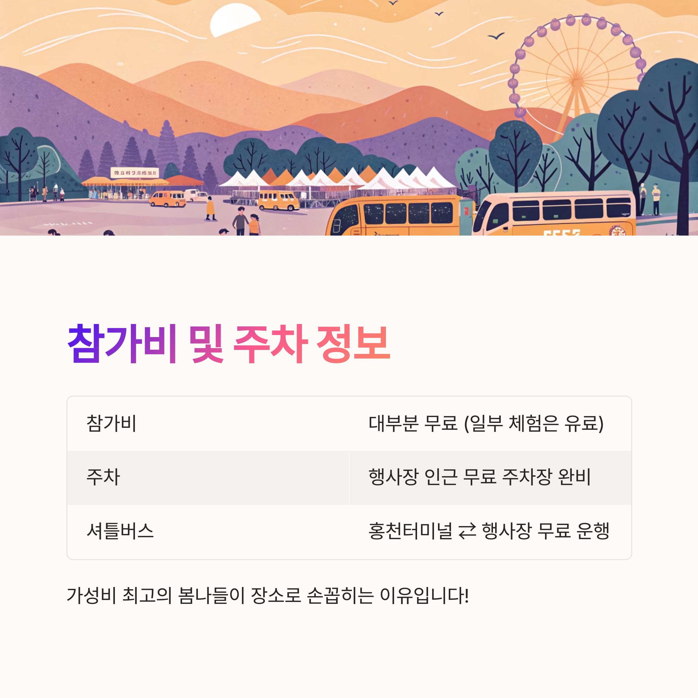 셔틀버스 홍천터미널 ⇄ 행사장 무료 운행