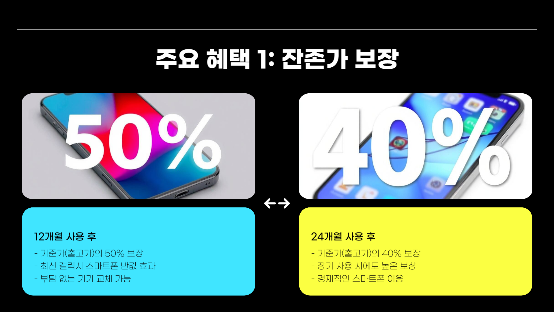 기기 반납 시 잔존가 보장 | 12개월 사용 후 50%, 24개월 사용 후 40% 보장 |