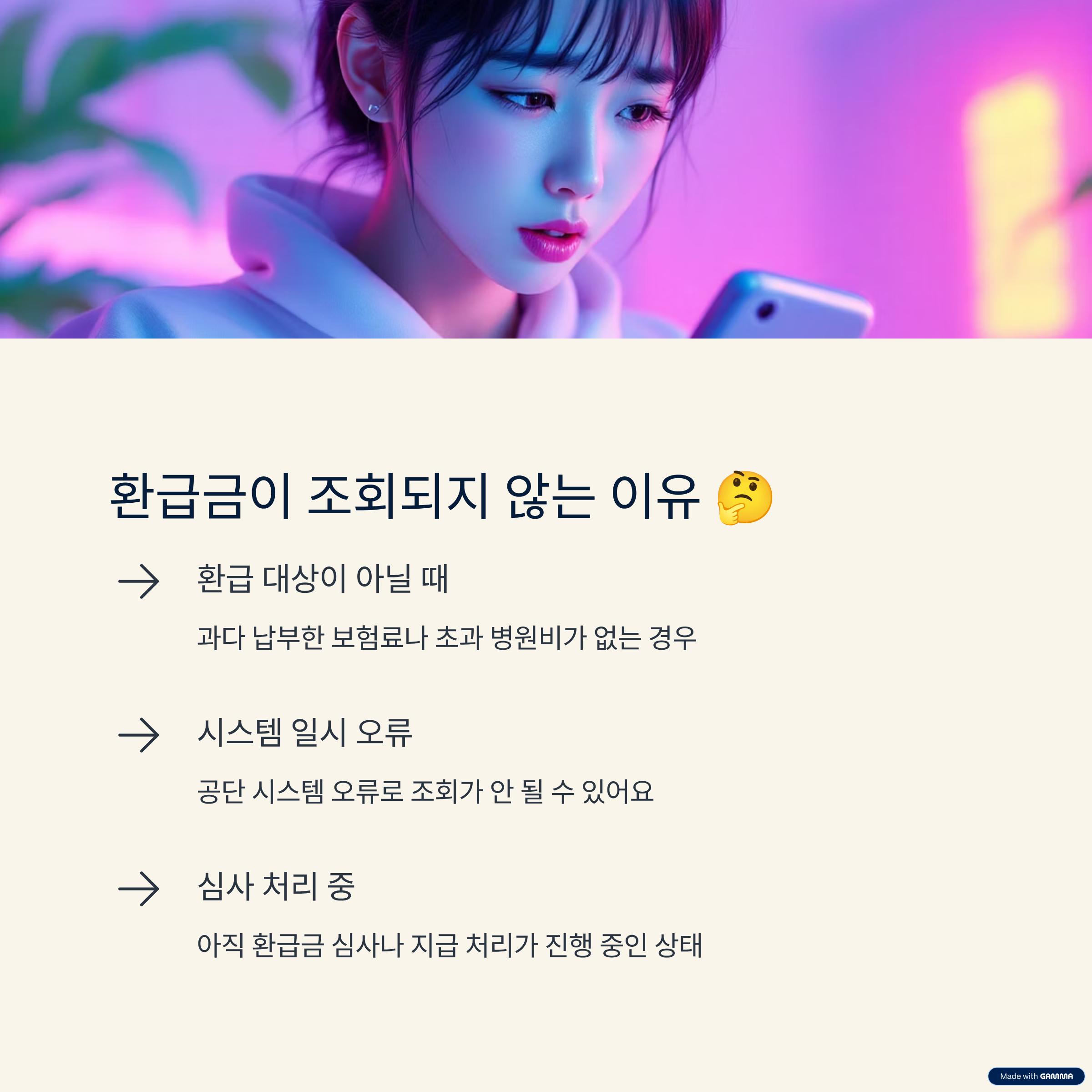 - 환급 대상이 아닐 때: 과다 납부한 보험료나 초과된 병원비가 없어 환급 대상이 아닐 수 있어요.