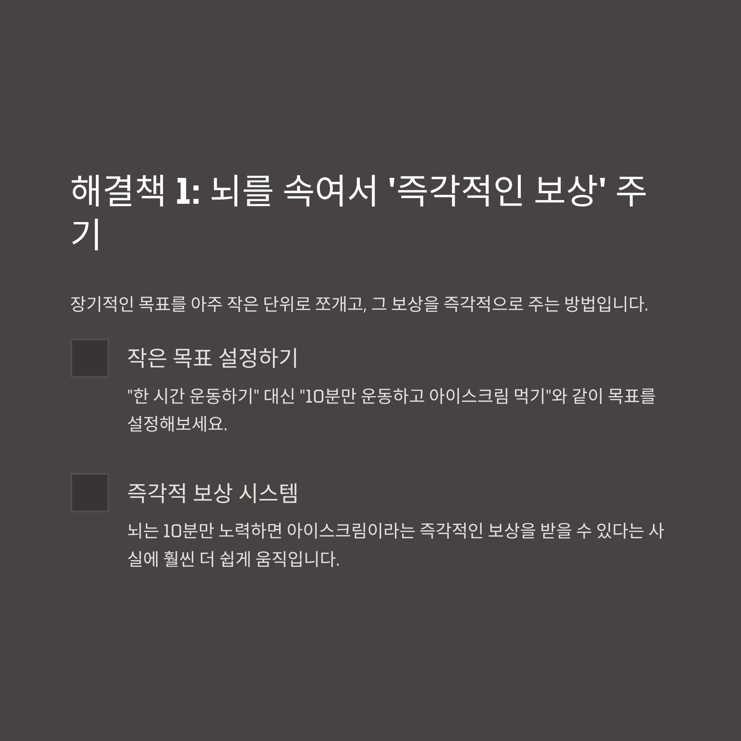 1. 뇌를 속여서 '즉각적인 보상' 주기