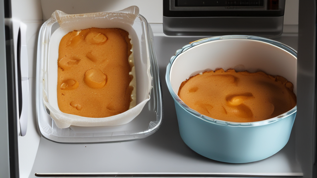 - 반죽을 붓고 랩으로 감싼 뒤 전자레인지에서 8분간 조리합니다.
