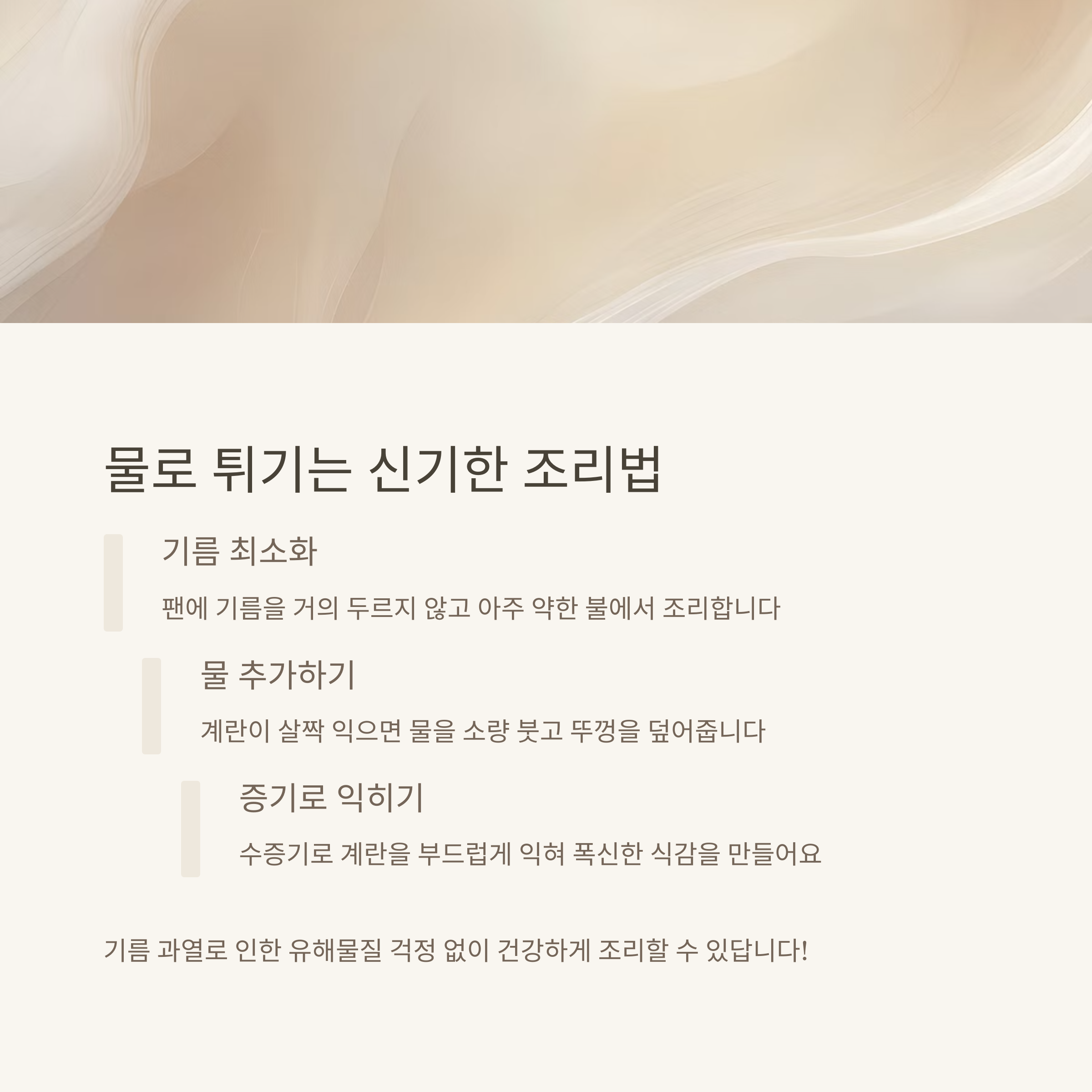 - 기름 없이 물로 익히는 건강한 계란 프라이