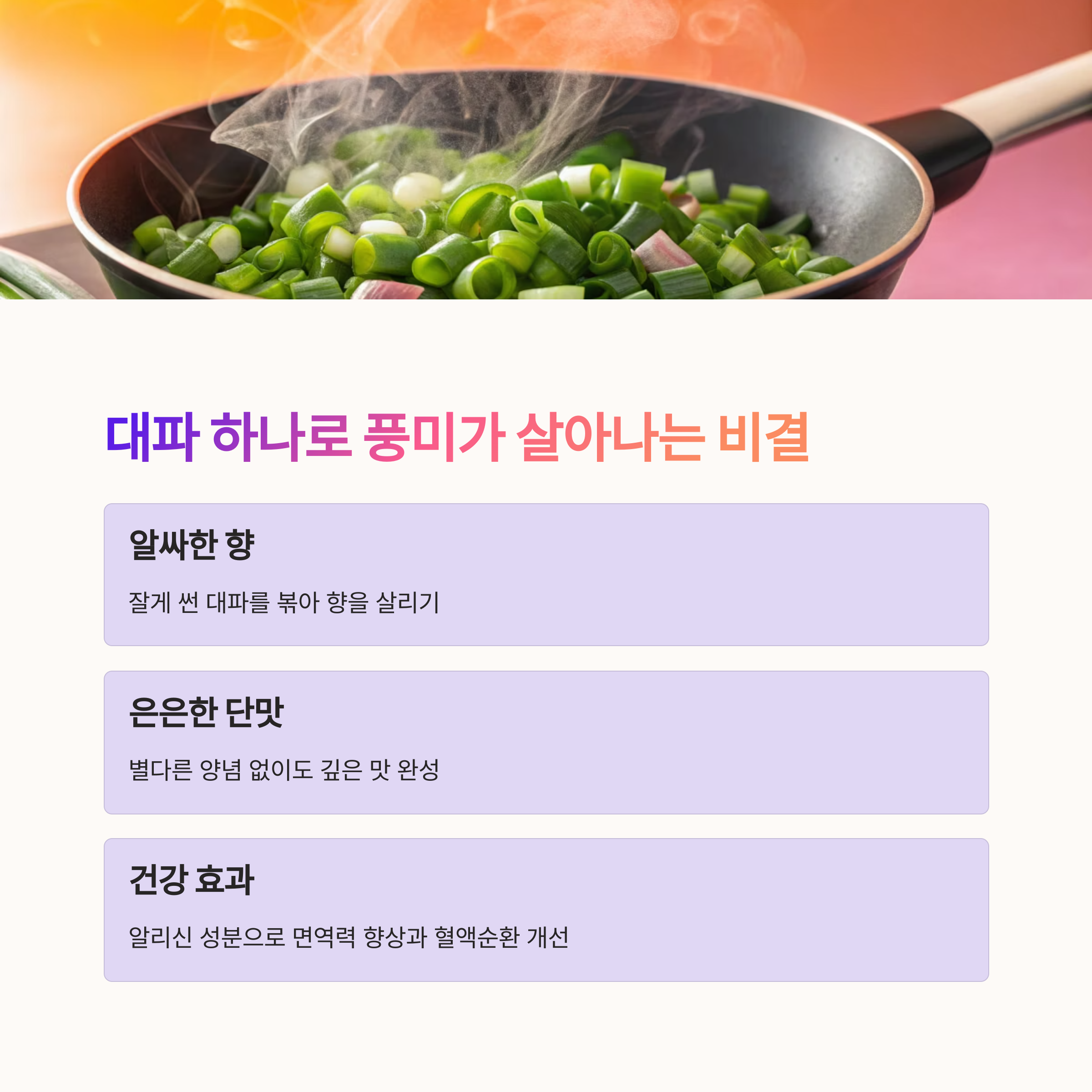 포인트: 대파의 알리신 성분은 면역력 향상과 혈액순환 개선에도 도움을 줍니다.