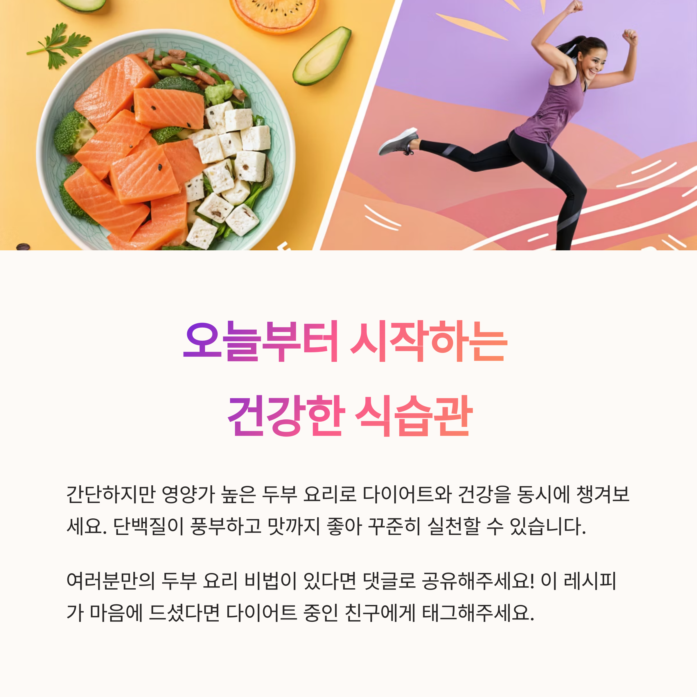 "두부는 다이어트 중에도 마음껏 먹을 수 있다"는 메시지로 시작합니다.
