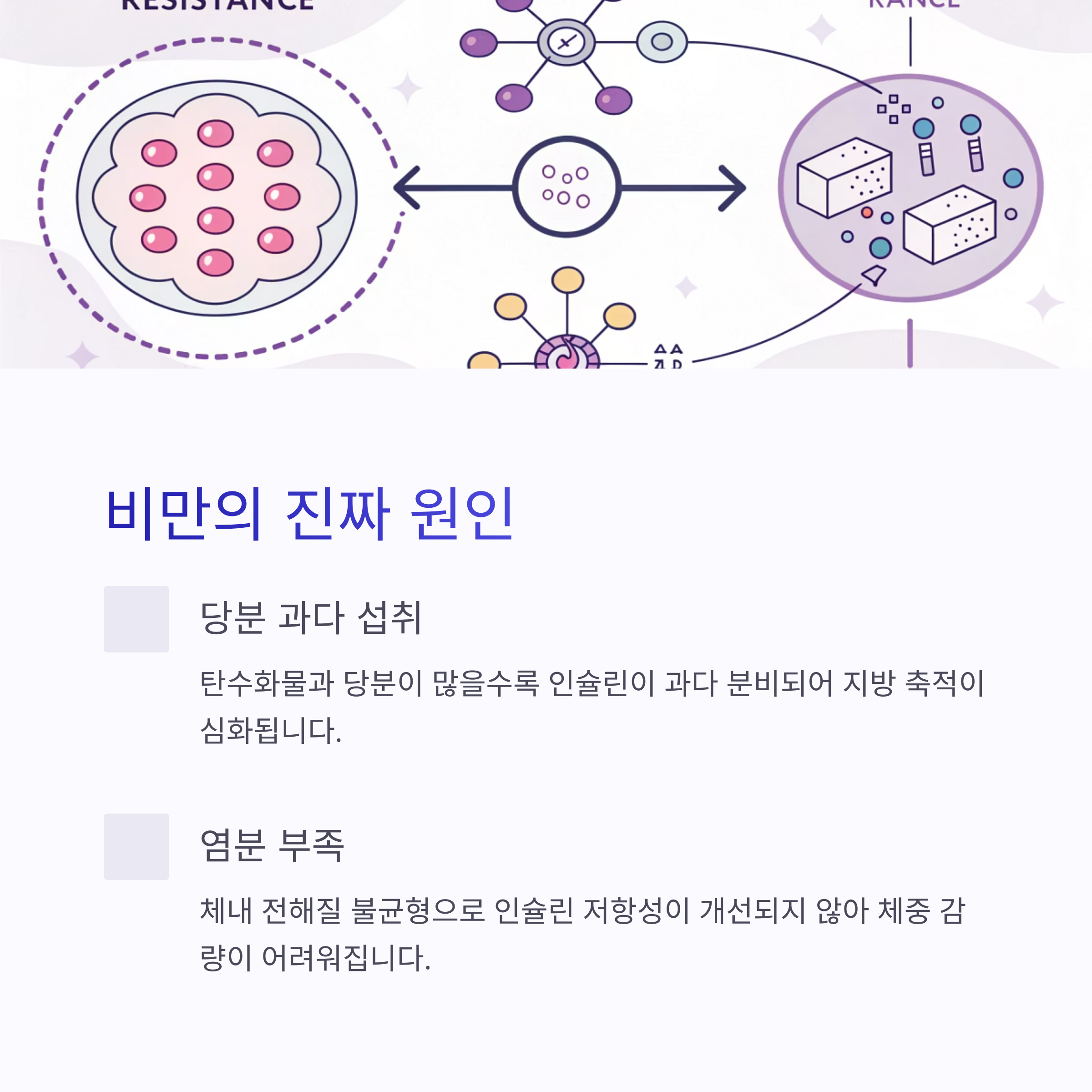 많은 분들이 비만의 원인을 ‘지방’이나 ‘칼로리 과다’로 생각하지만, 현대 비만의 핵심은 과도한 당분 섭취와 염분 부족으로 인한 영양 불균형에 있습니다.