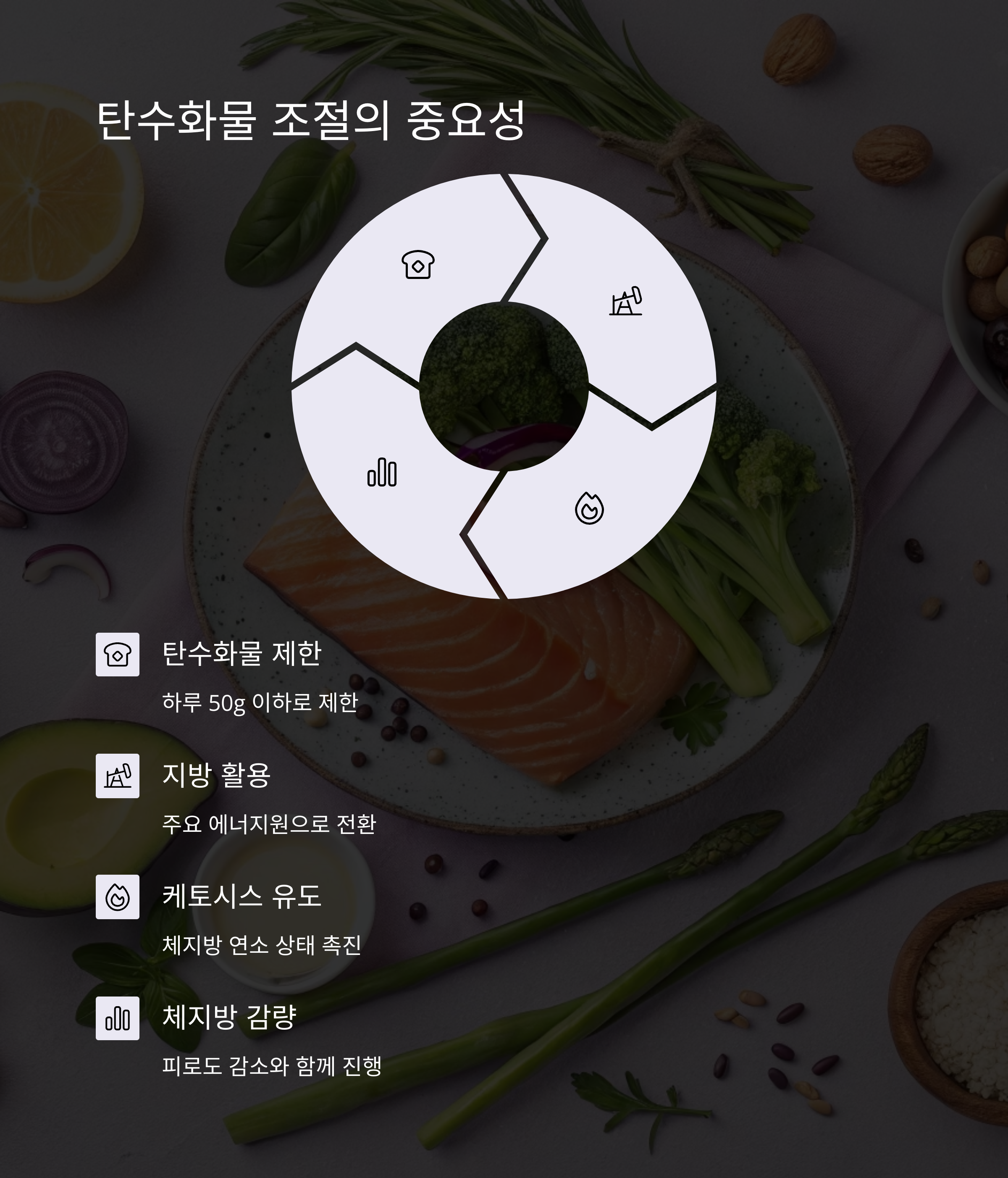- 탄수화물 섭취량을 하루 50g 이하로 제한