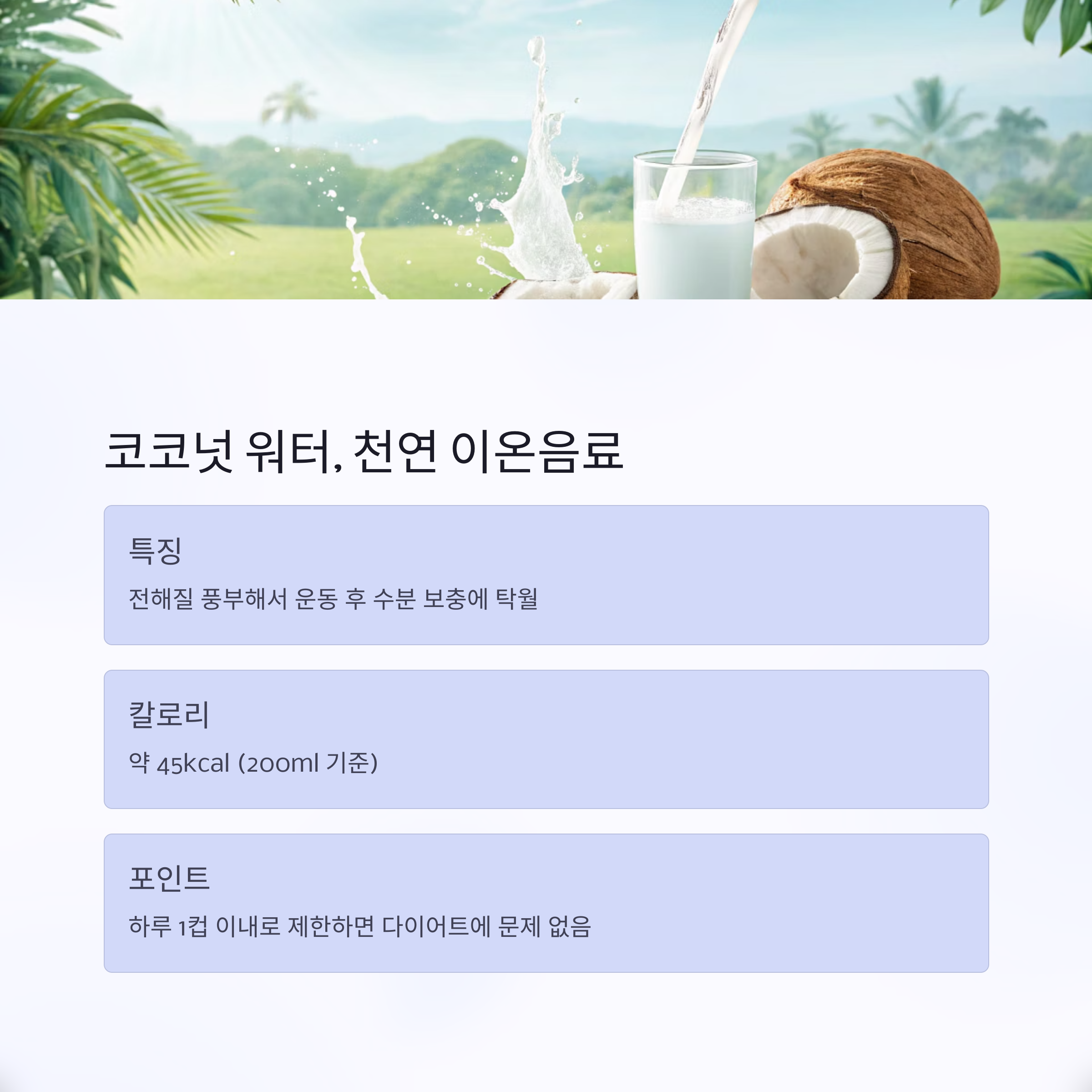 - 전해질 풍부해서 운동 후 수분 보충에 탁월