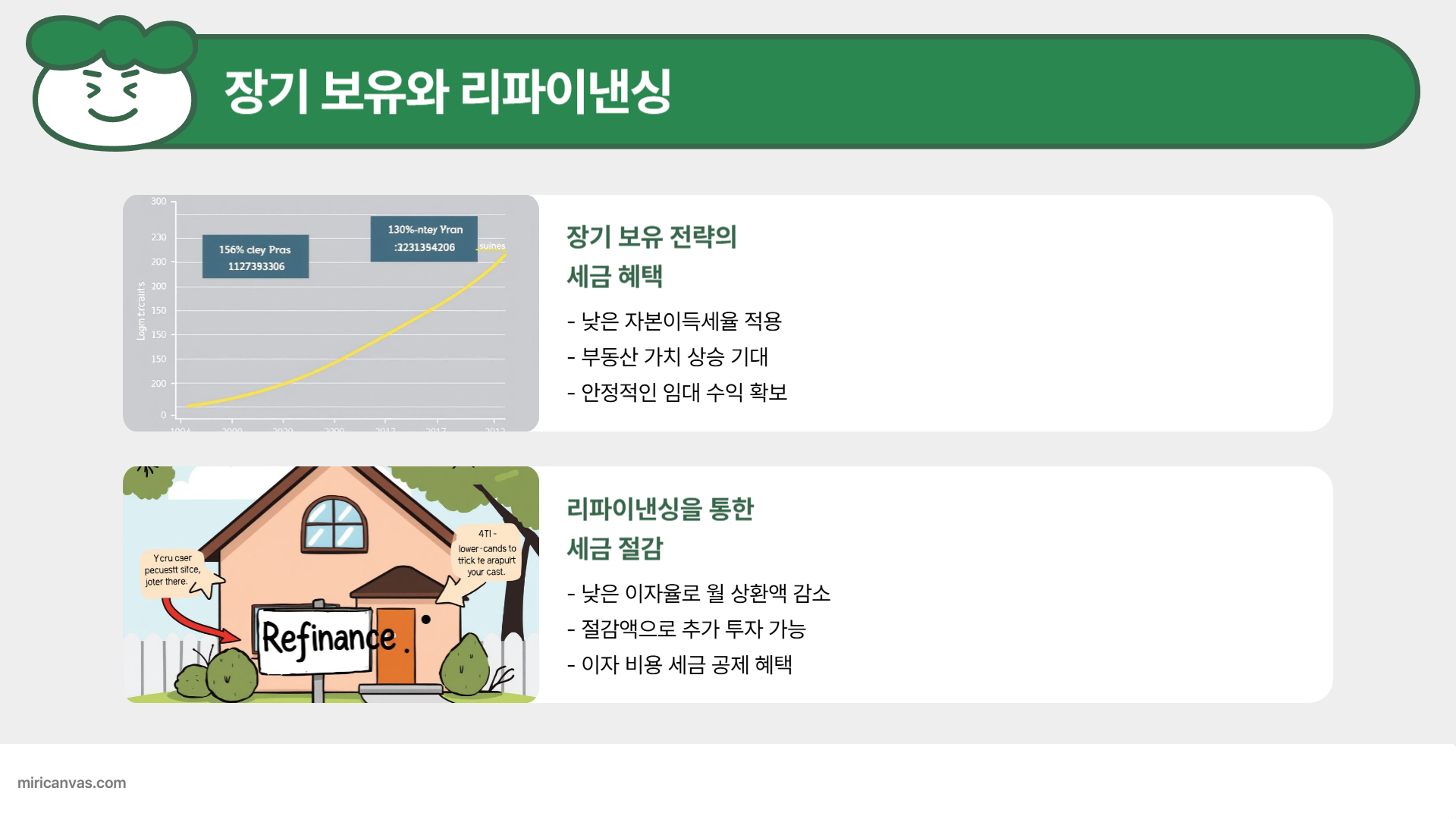 부동산을 장기적으로 보유하면 단기 매매보다 낮은 세율이 적용될 수 있습니다. 자본 이득세는 보유 기간에 따라 차등 적용되므로, 장기 보유 전략을 고려하는 것이 좋습니다. 또한, 장기적인 투자 관점에서 부동산의 시장 가치는 상승할 가능성이 높아지므로, 안정적인 수익을 기대할 수 있습니다.
