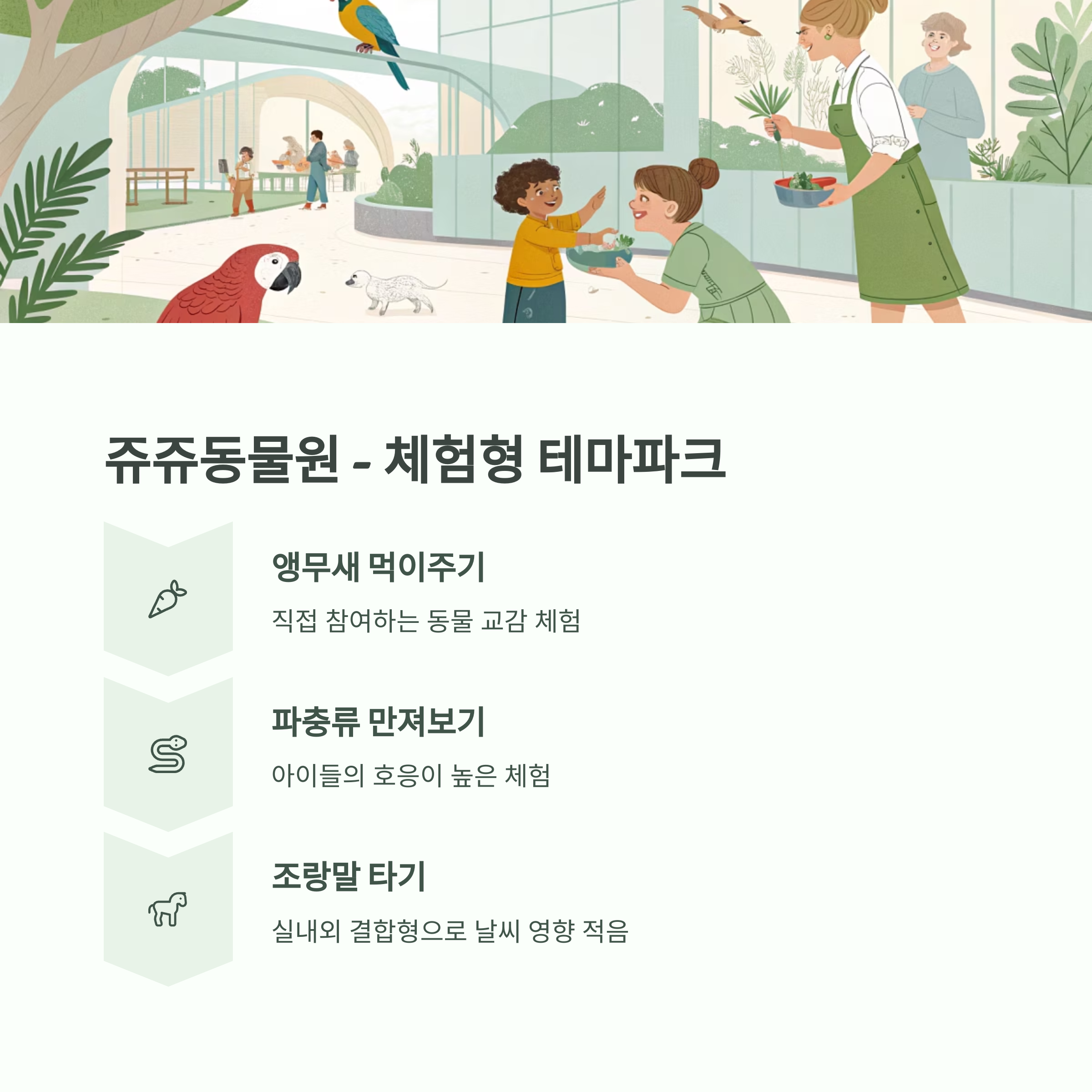 | 쥬쥬동물원 | 용인 | 동물 교감 중심 체험형 |