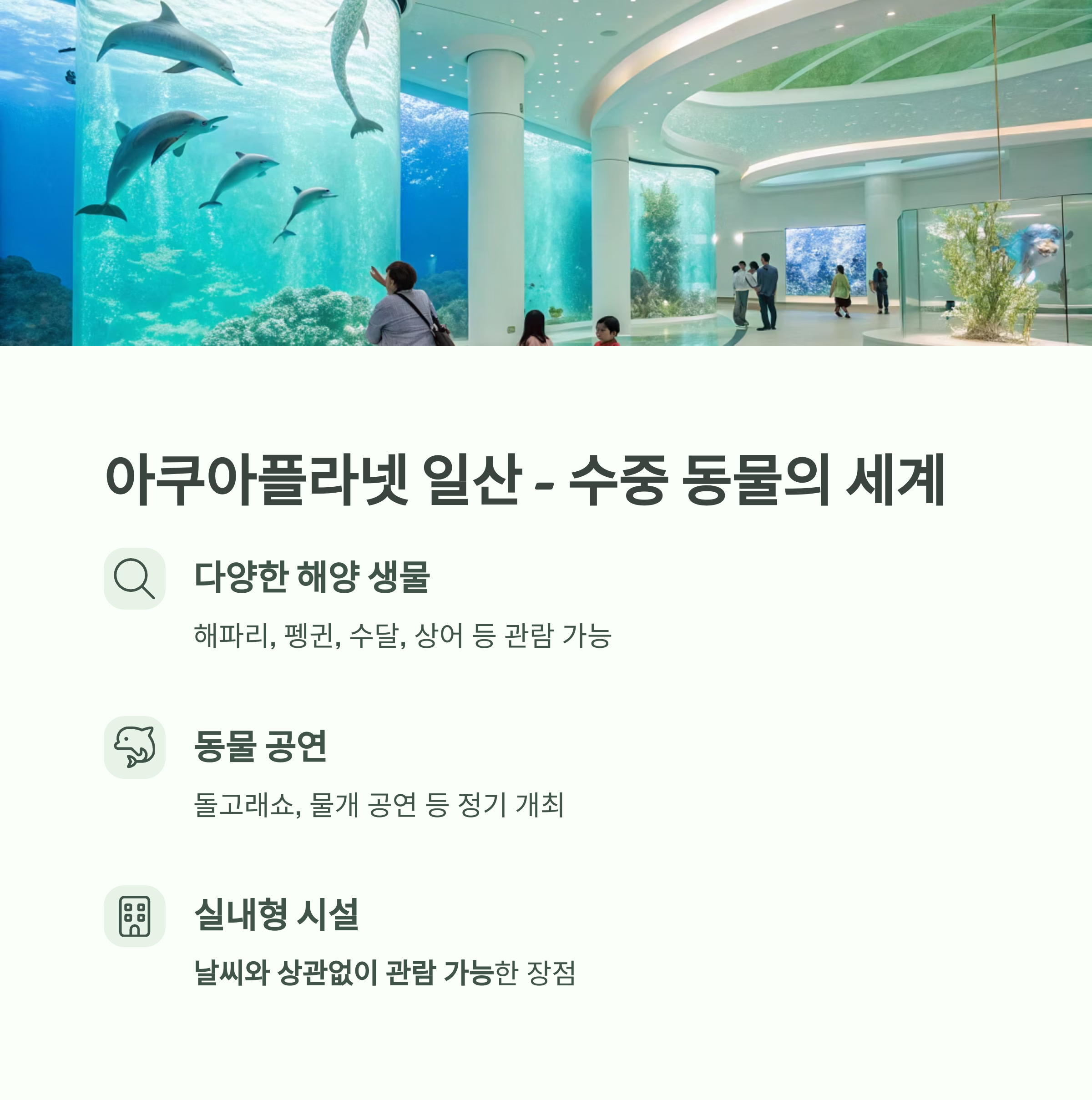 육상 동물원은 아니지만 해양 동물에 관심 많은 아이에게 최적입니다.