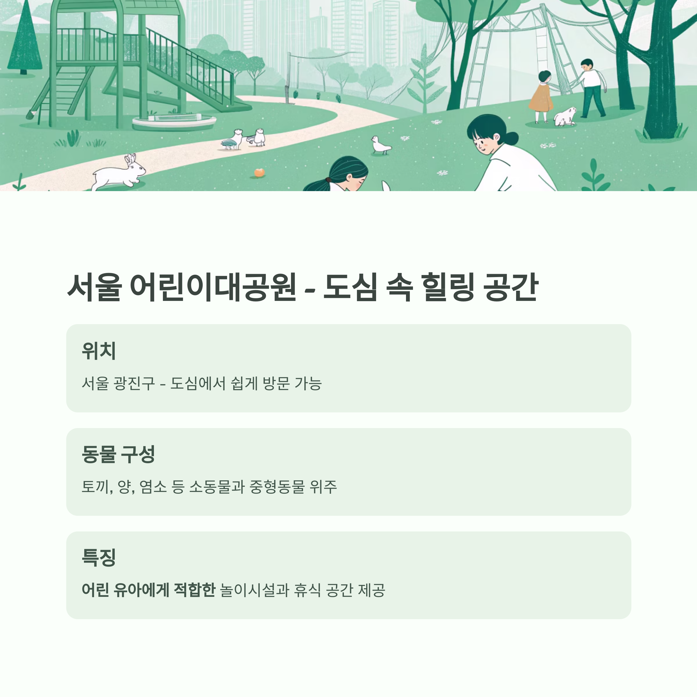 서울 도심에서 가까우면서도 다양한 동물과 체험 콘텐츠를 갖춘