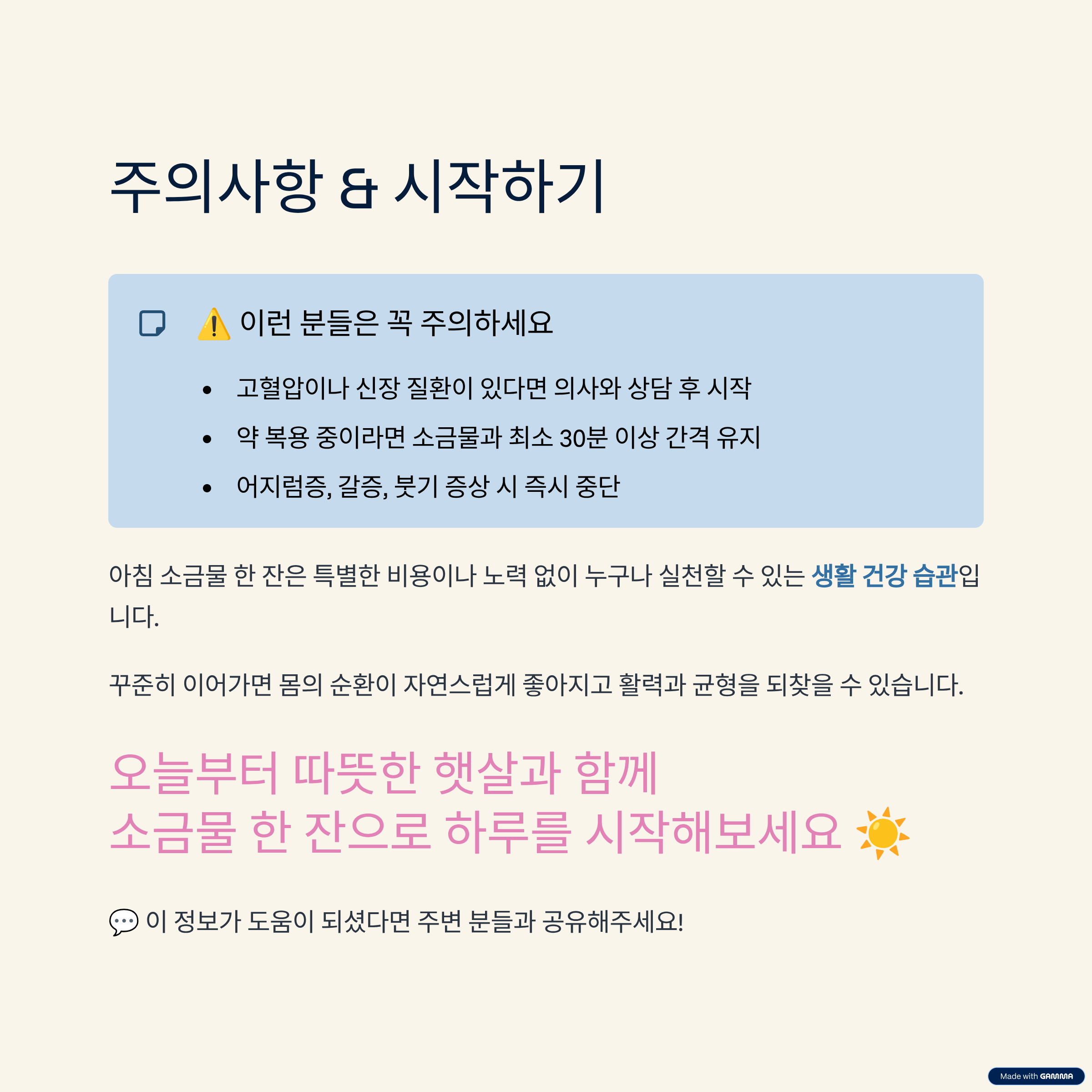 | 💧 시니어 건강 : 물만 마시지 마세요! 아침 공복 소금물 7일 챌린지 후기 (브레인포그·피로개선 효과) (0) | 2025.10.09 |