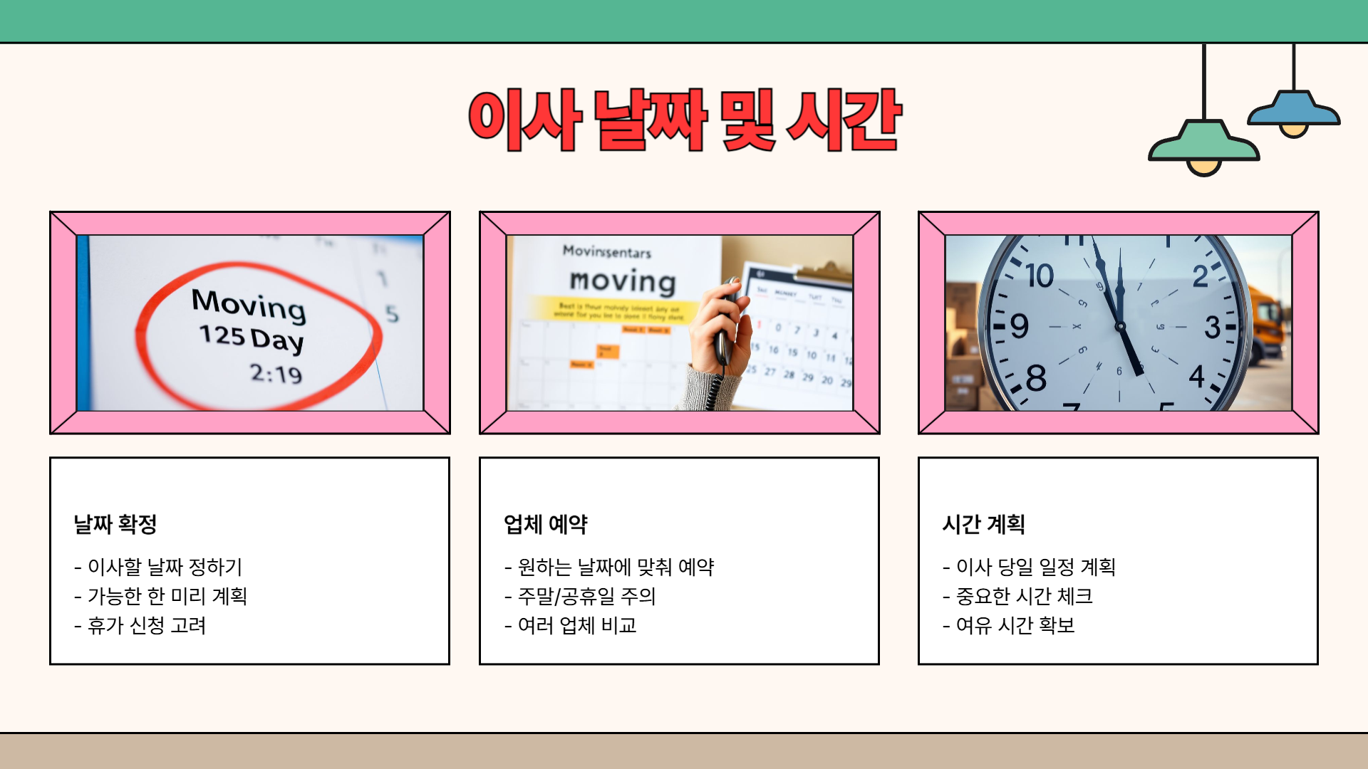 확정: 이사할 날짜를 정하고, 가능한 한 미리 계획합니다.