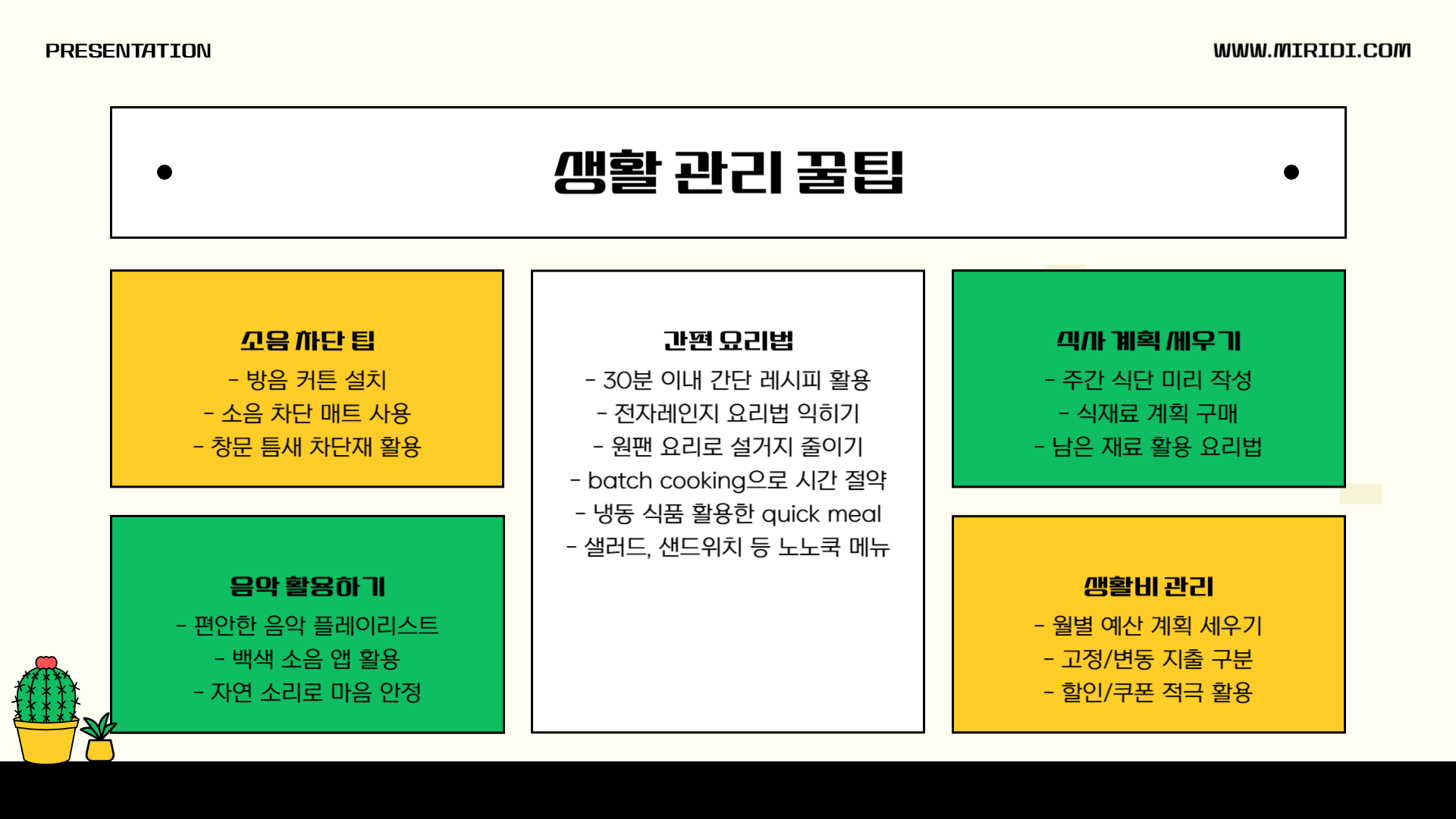 이 꿀팁들을 활용하여 새로운 원룸에서의 생활을 더욱 풍요롭고 즐겁게 만들어 보세요. 쾌적하고 효율적인 공간에서 행복한 생활을 누리시길