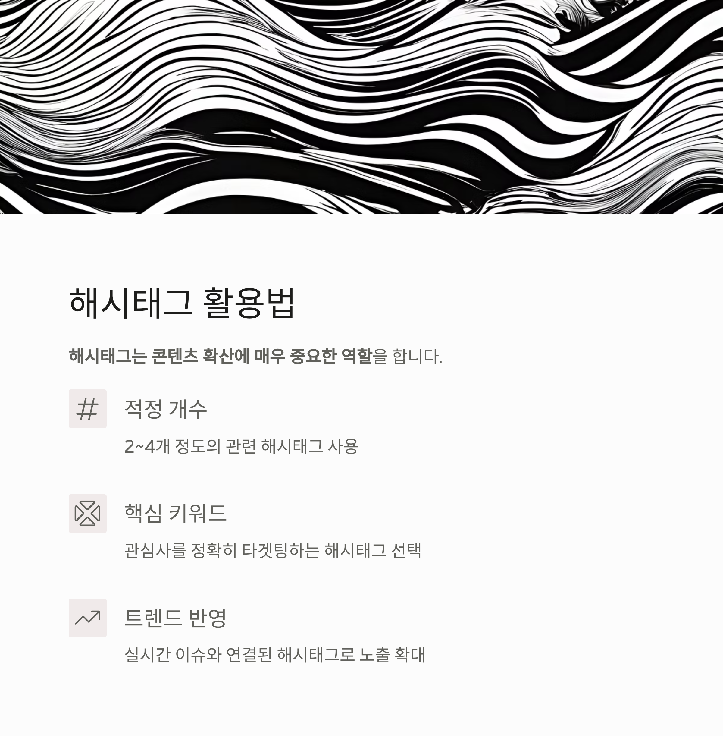 하지만 너무 많거나 무관한 해시태그는 오히려 노출을 방해할 수 있으므로