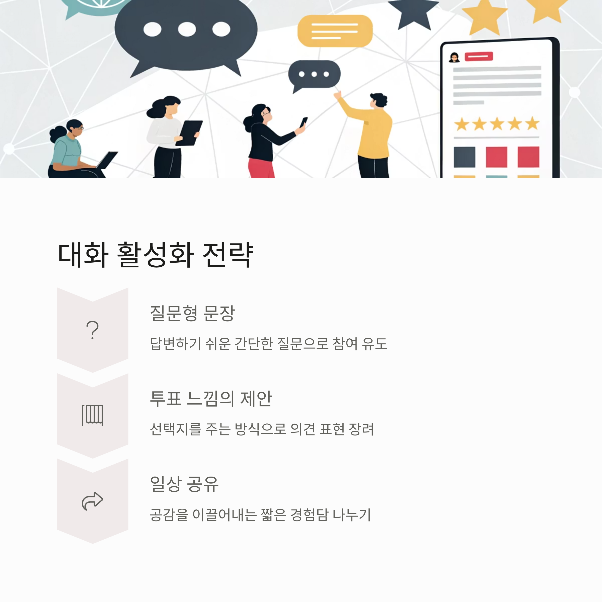 이런 질문형 문장에 댓글이 달리면 하나의 미니 커뮤니티처럼 대화가 이어질 수 있습니다.