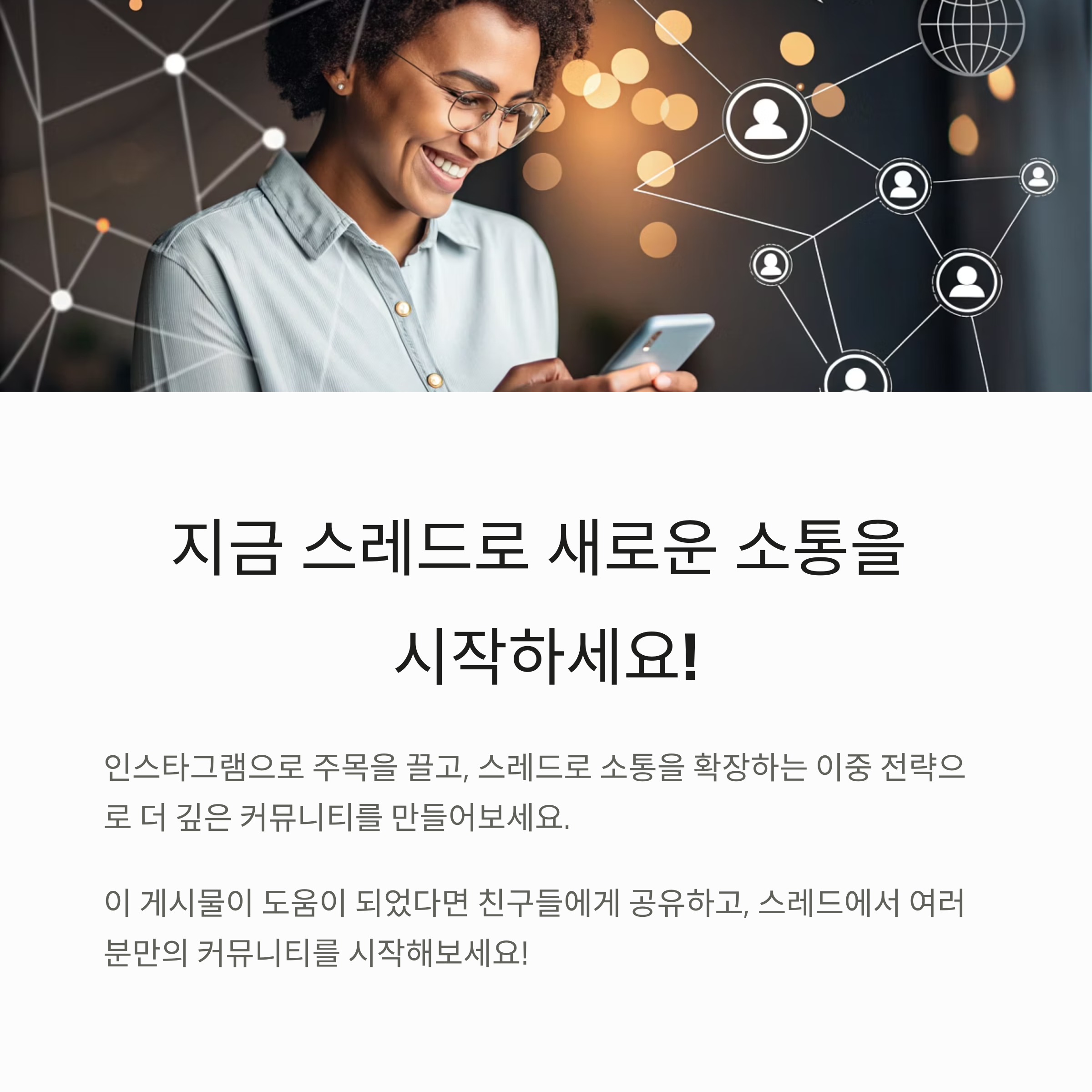 인스타그램으로 주목을 끌고, 스레드로 소통을 확장하는 이중 전략도 가능합니다.