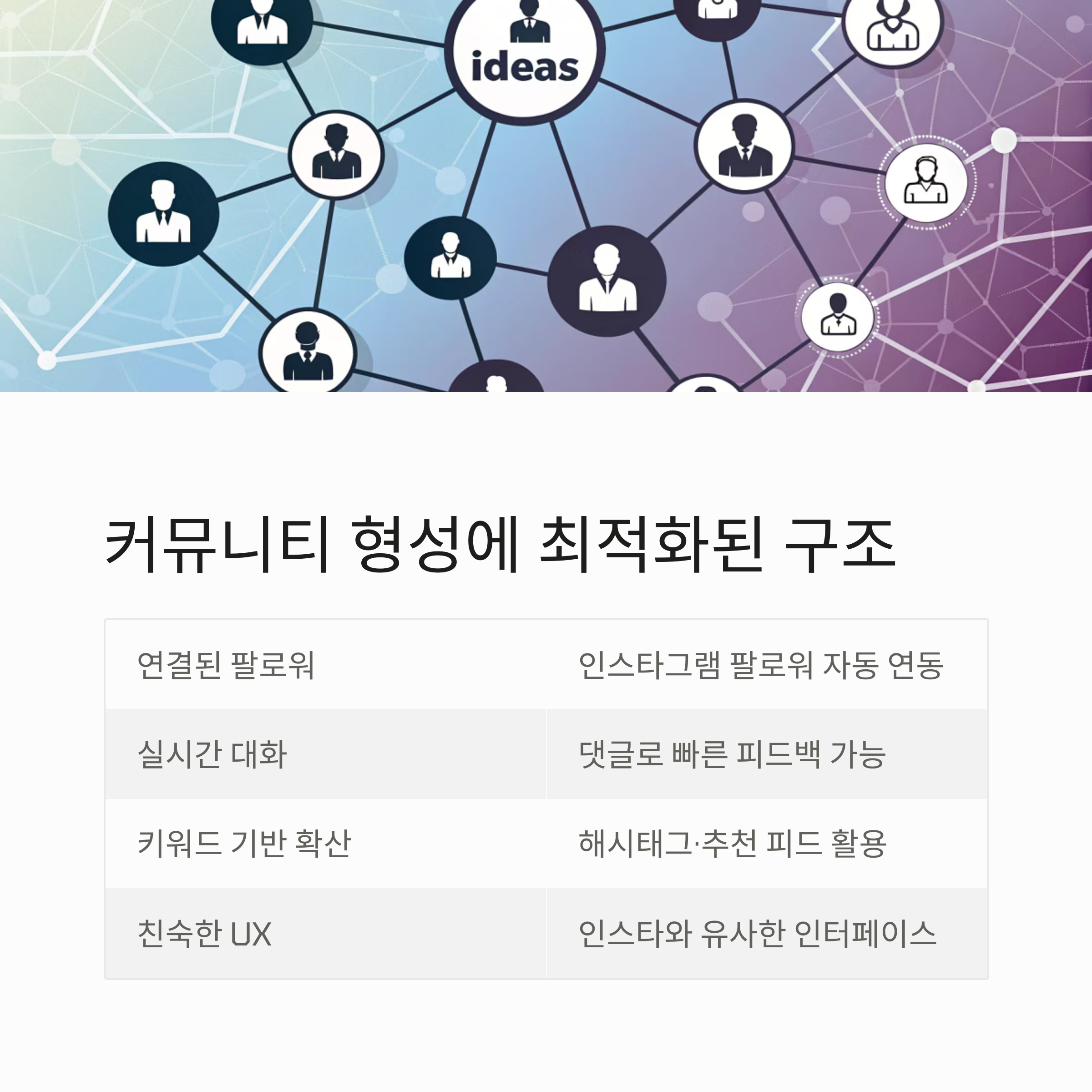 | 친숙한 UX | 인스타와 유사한 인터페이스 |
