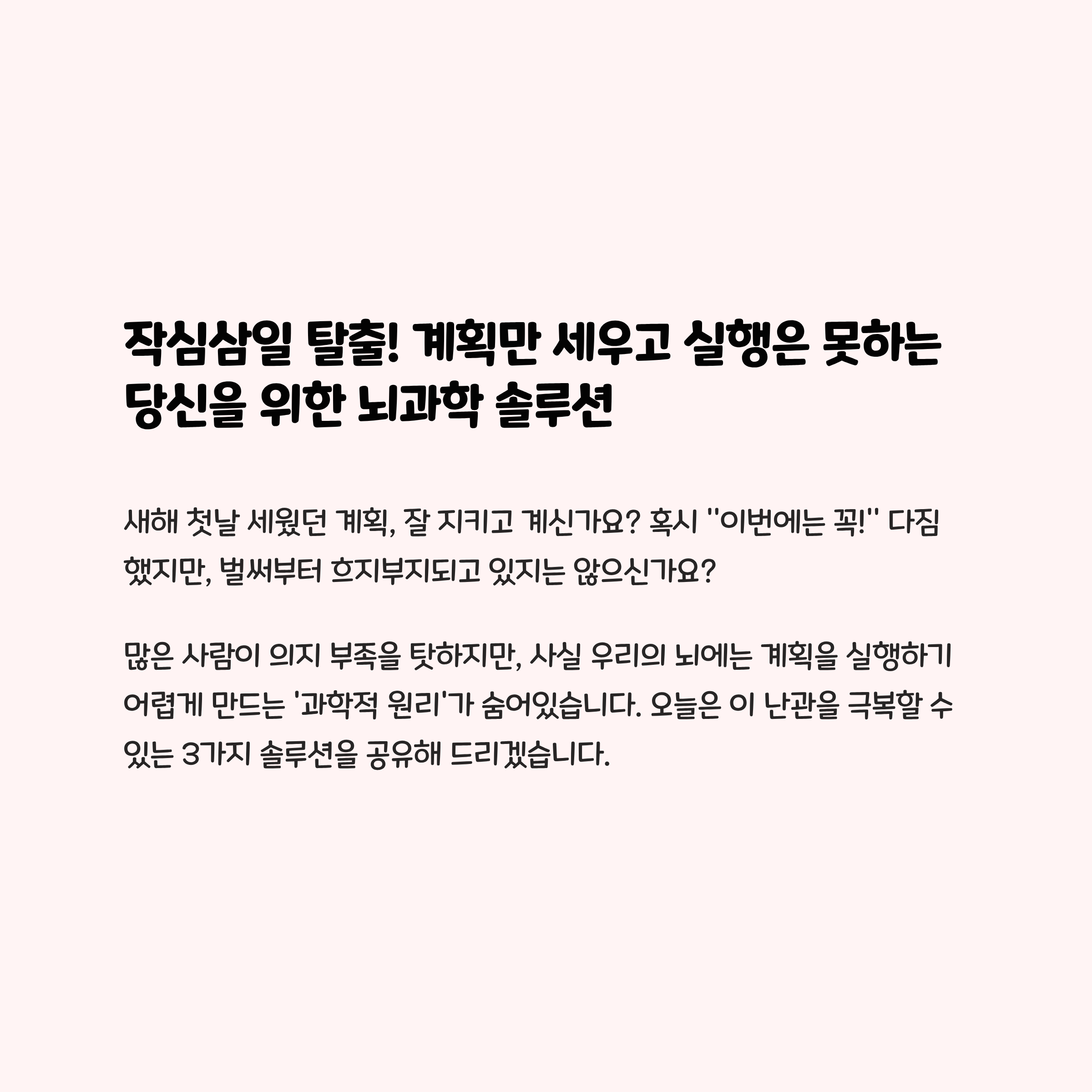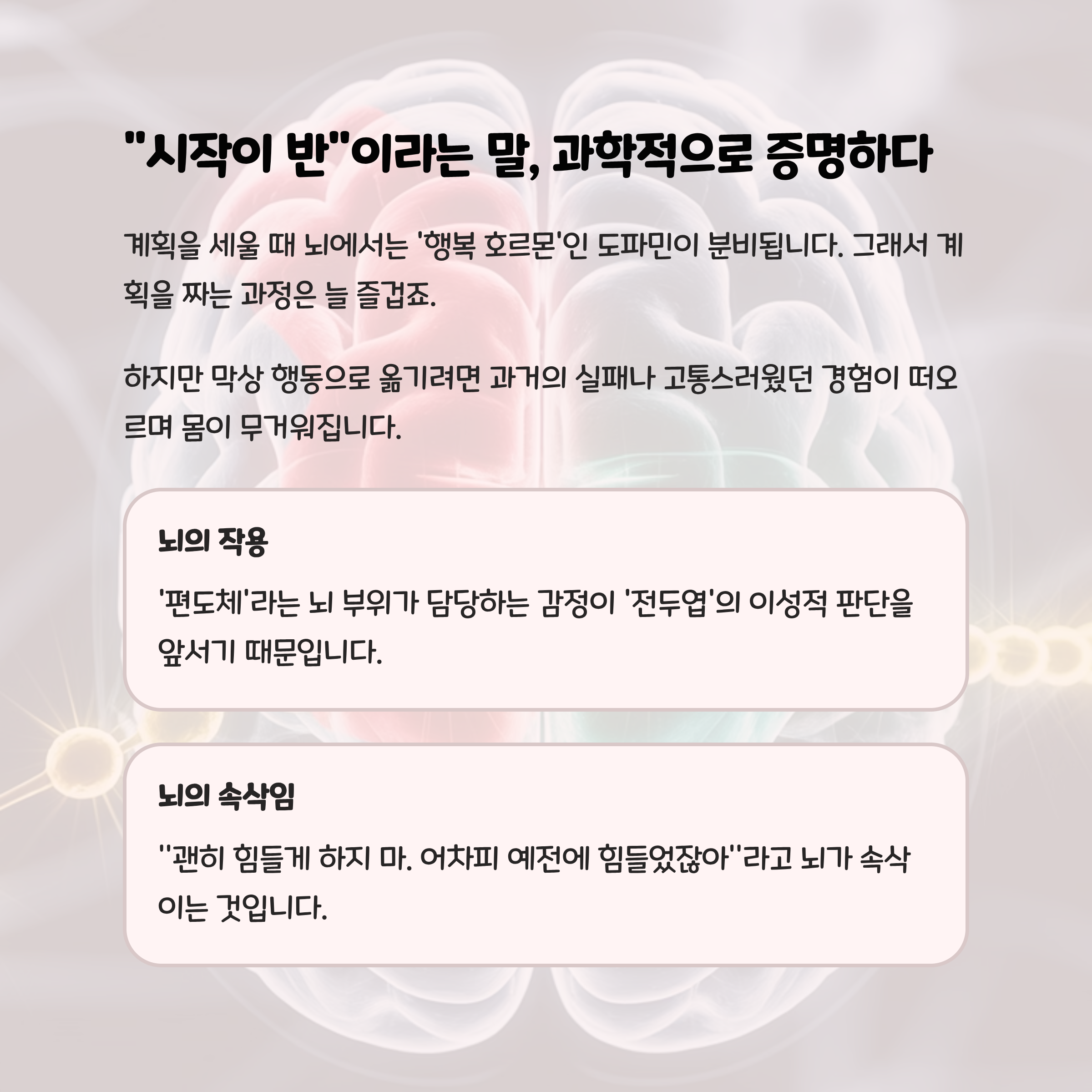 사실 우리의 뇌에는 계획을 실행하기 어렵게 만드는 '과학적 원리'가 숨어있습니다.