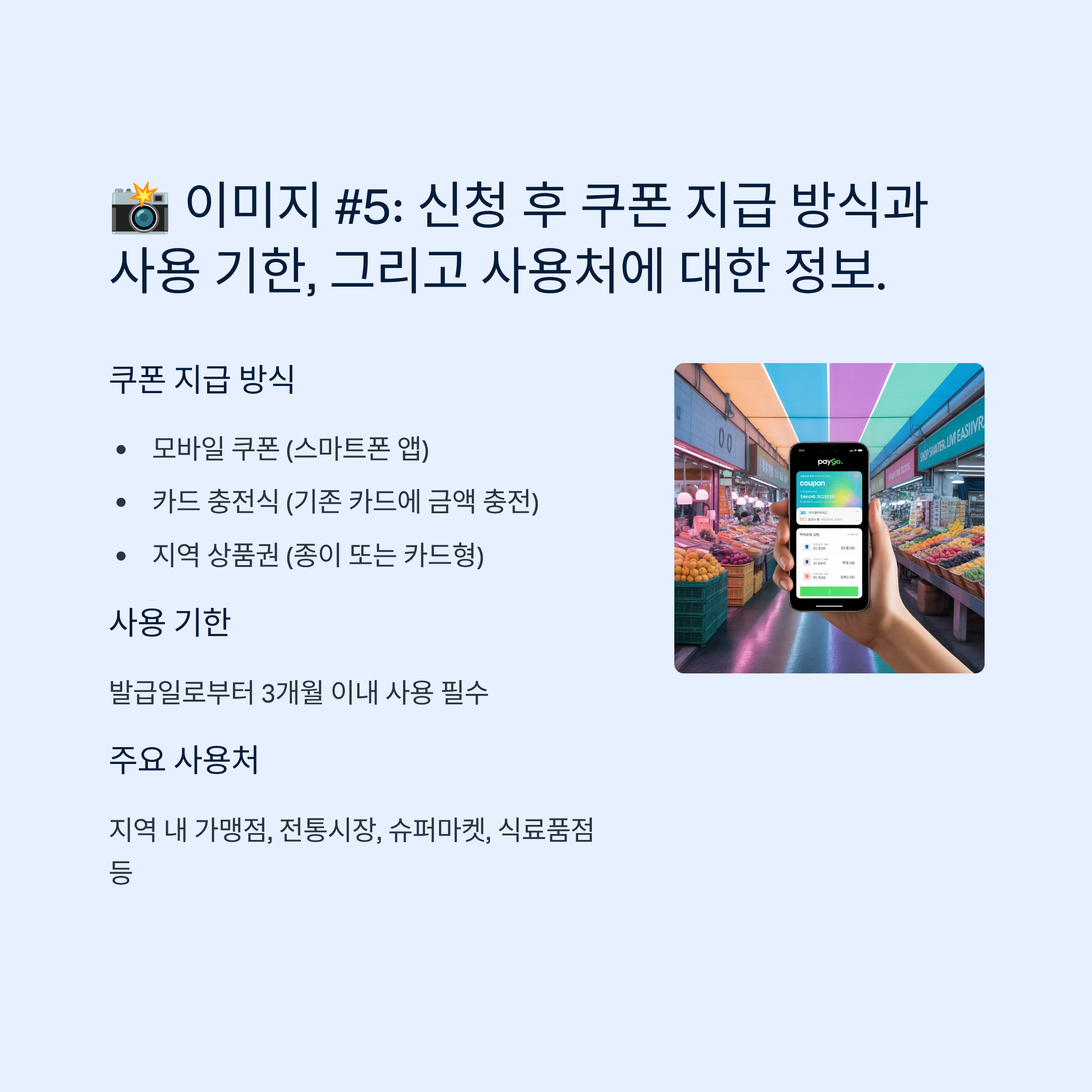 쿠폰은 실물 카드로 지급되거나 지역사랑상품권, 전자결제 수단 등 다양한 형태로 제공될 수 있습니다.