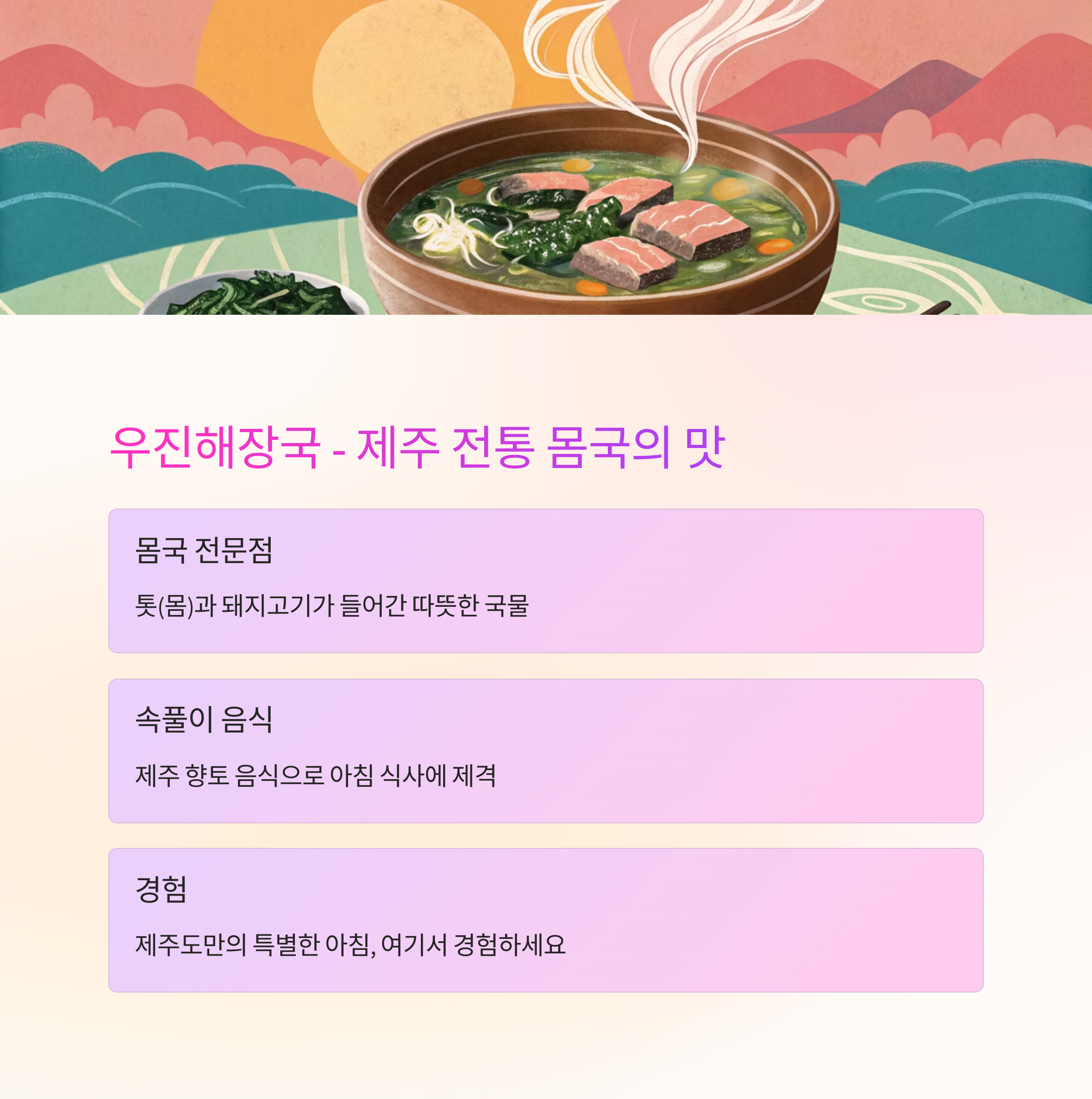 "제주도만의 특별한 아침 식사, 여기서 경험하세요."