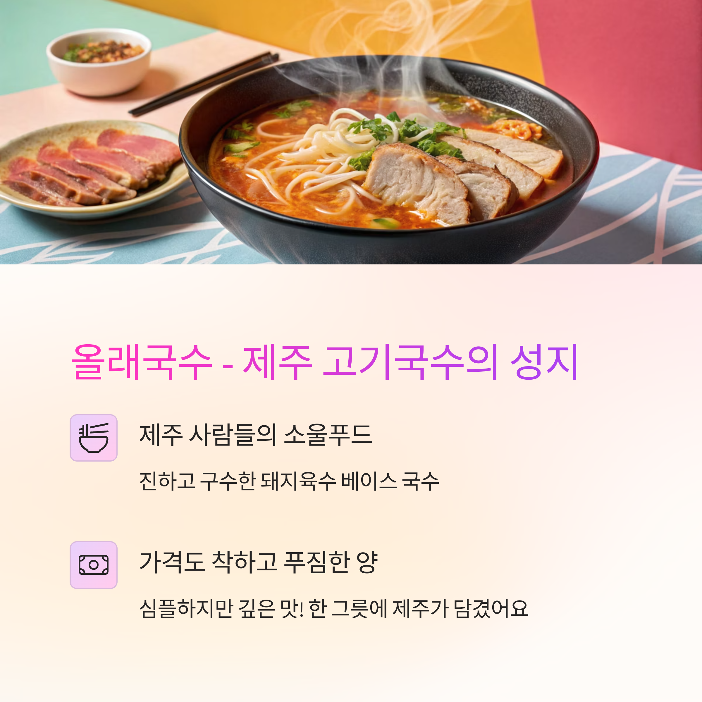 3. 올래국수 – 제주 고기국수 성지