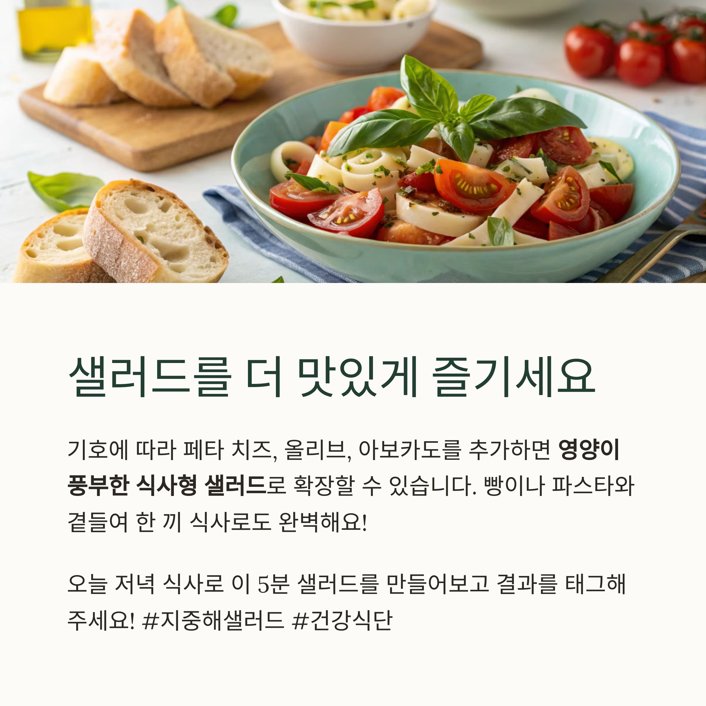 더욱 포만감 있고 영양이 풍부한 식사형 샐러드로 확장할 수 있습니다.