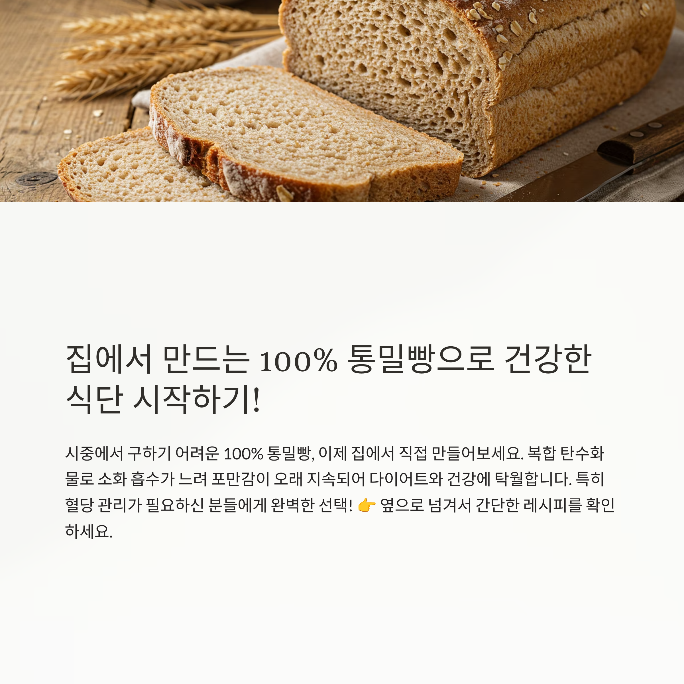 집에서 직접 만든 건강한 100% 통밀빵으로 맛과 건강을 동시에 챙겨보세요!