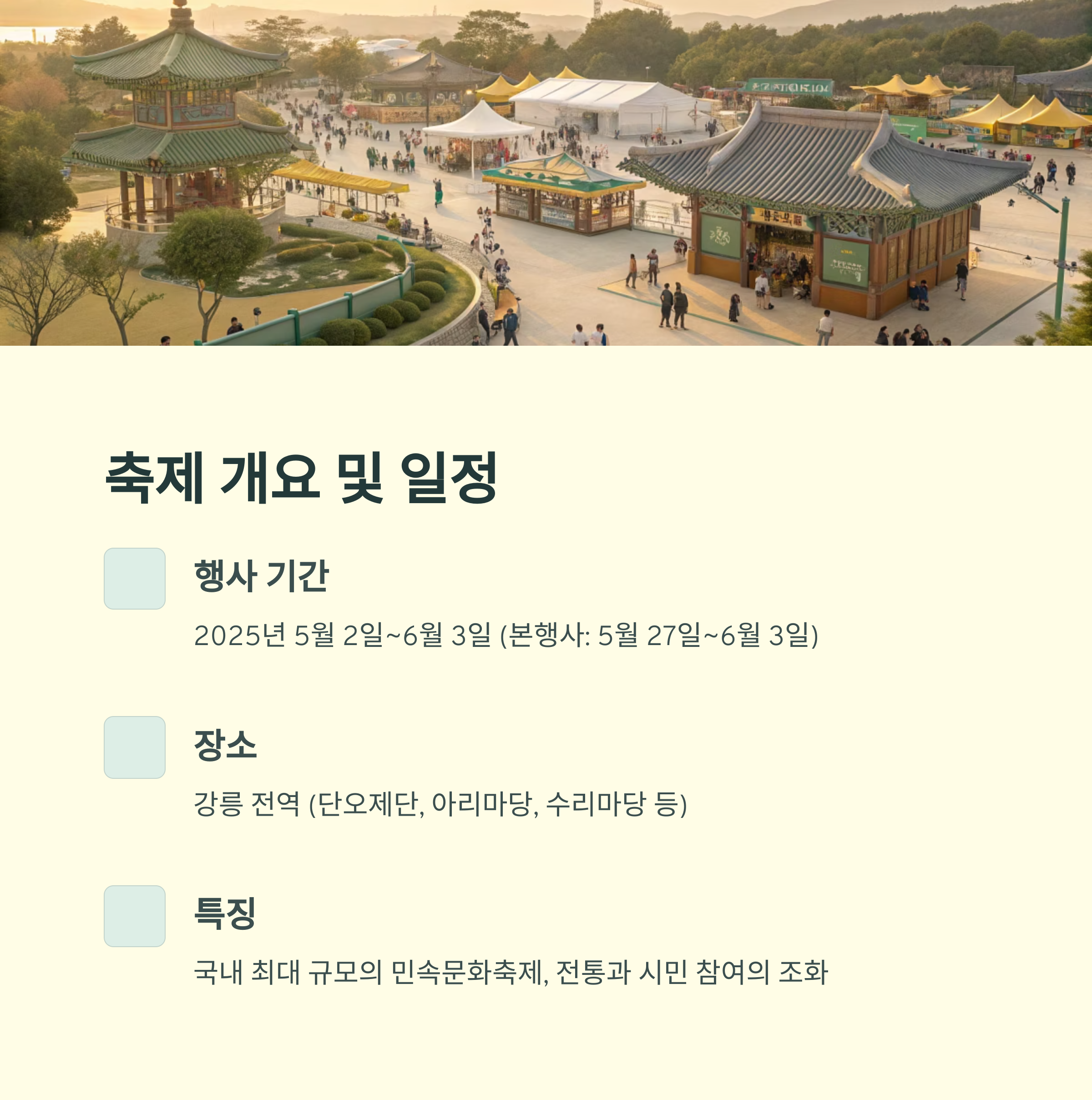 2025년 5월 2일부터 6월 3일까지 강릉 전역에서 다채롭게 펼쳐집니다.