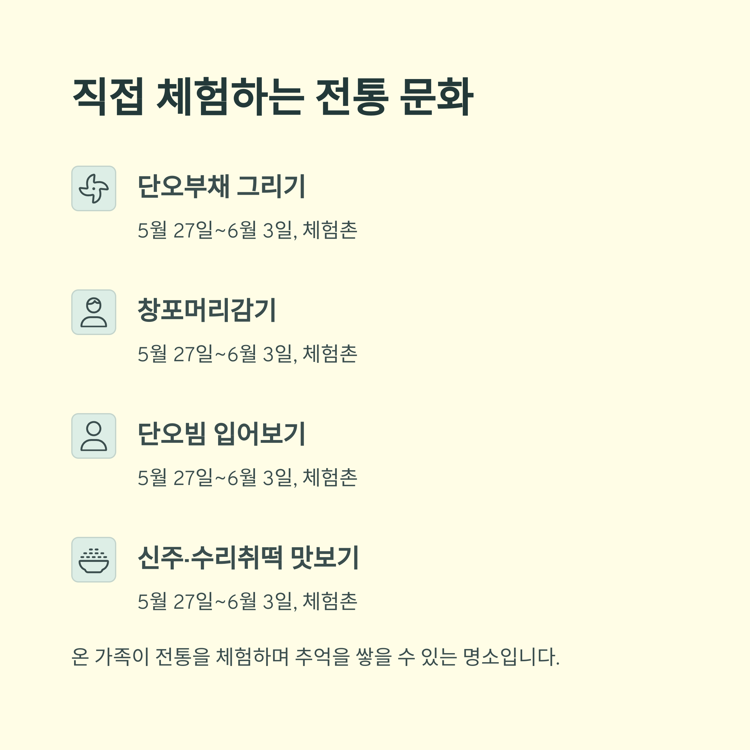 | 단오부채 그리기 | 체험촌 | 5.27~6.3/10:00~21:00 |