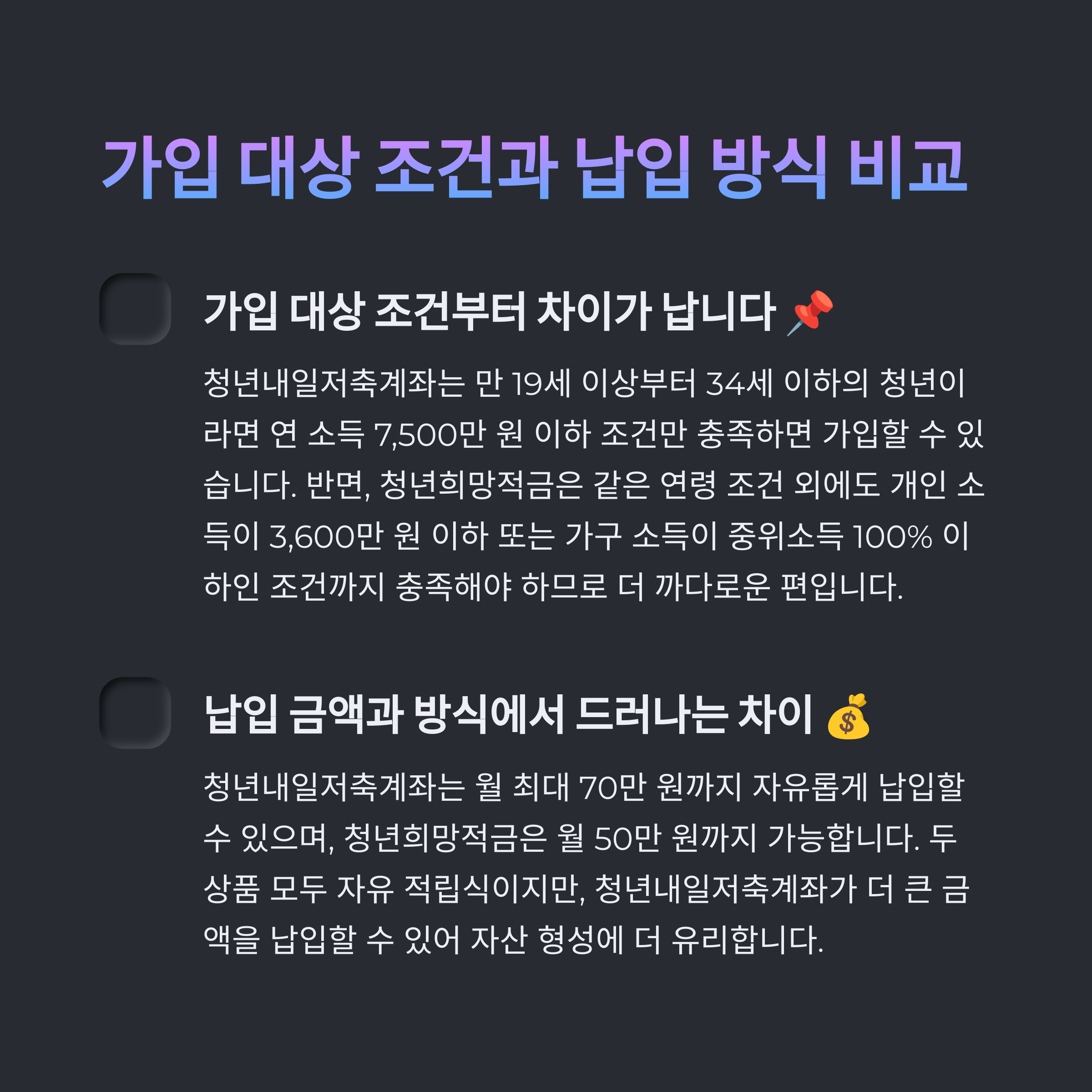 가입 대상 조건부터 차이가 납니다 📌