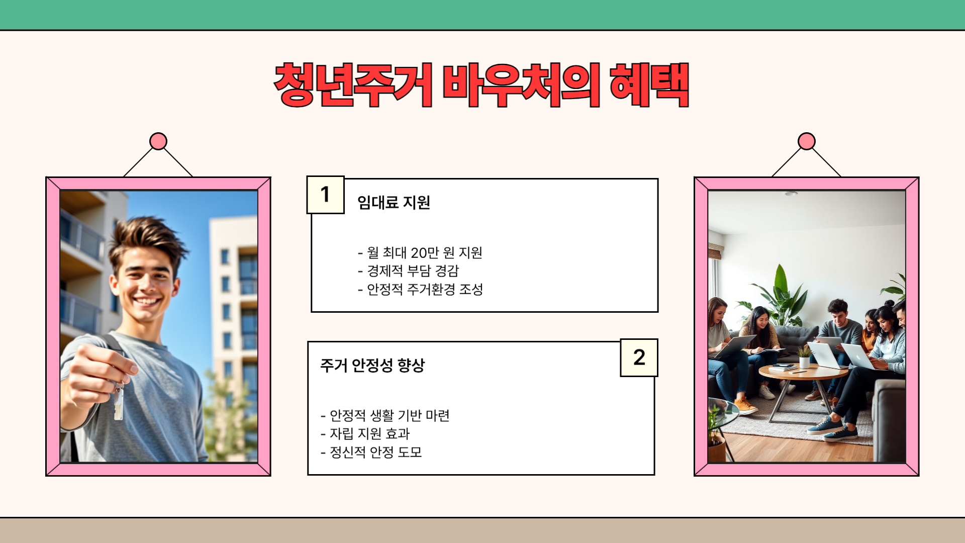 주거 안정성 향상: 경제적 부담을 줄여주어 청년들이 안정적으로 생활할 수 있도록 돕습니다.