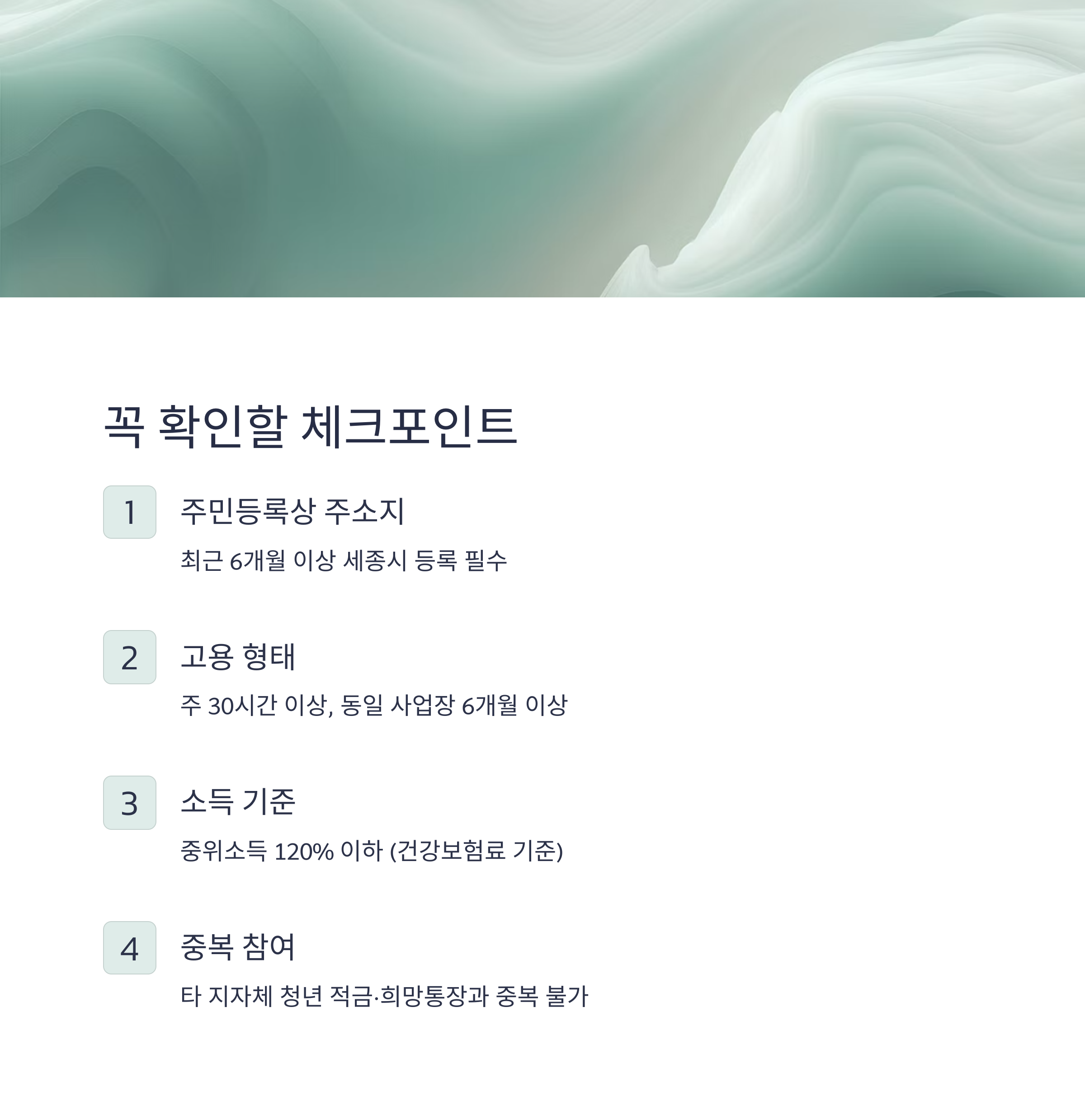 | 중복 참여 불가 | 타 지자체 청년 적금·희망통장과 중복 불가 |