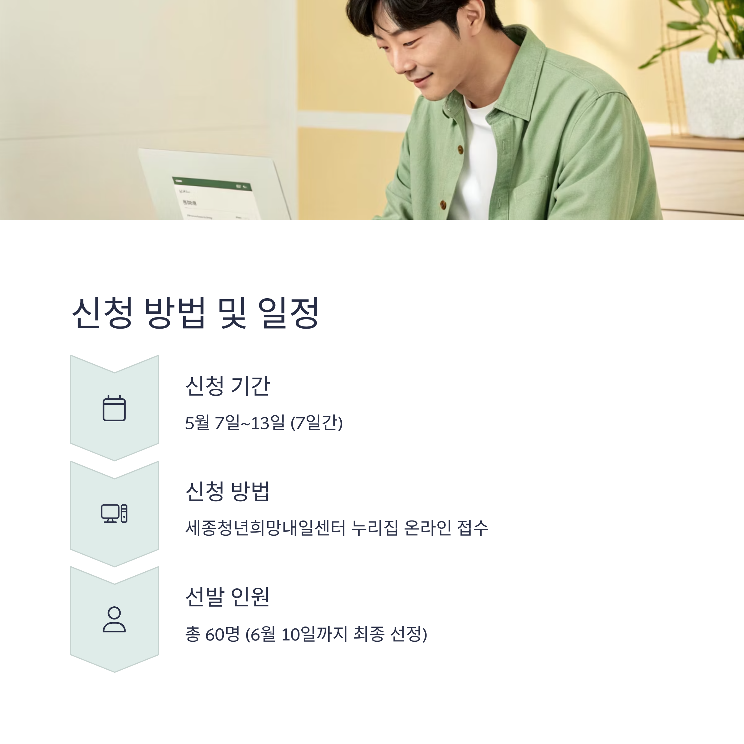 신청은 온라인으로 진행되며, 세종청년희망내일센터 누리집을 통해 가능합니다.