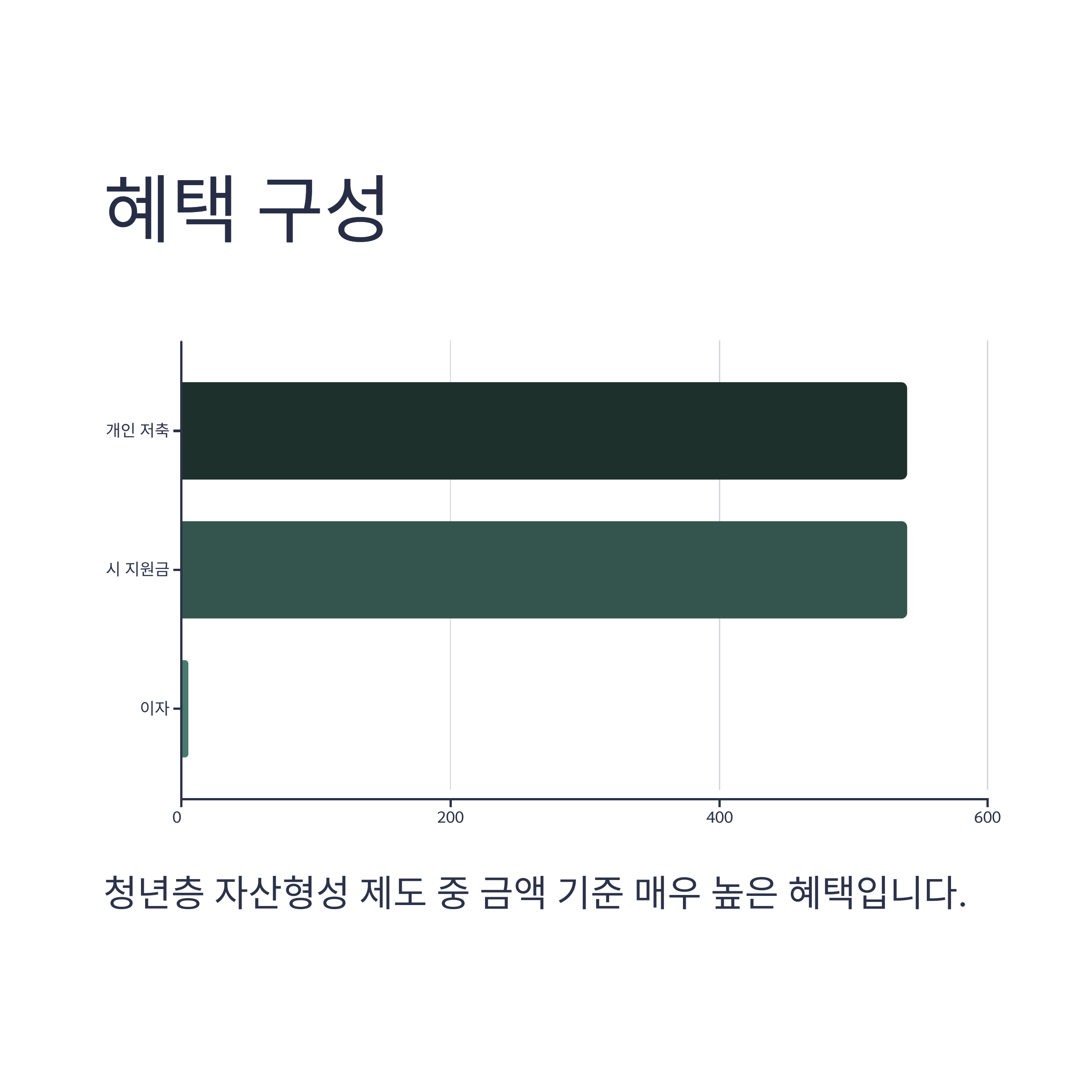 총 수령 가능 금액은 최대 1,080만원 + 이자로, 청년층 자산형성 제도 중 금액 기준 매우 높은 편입니다.