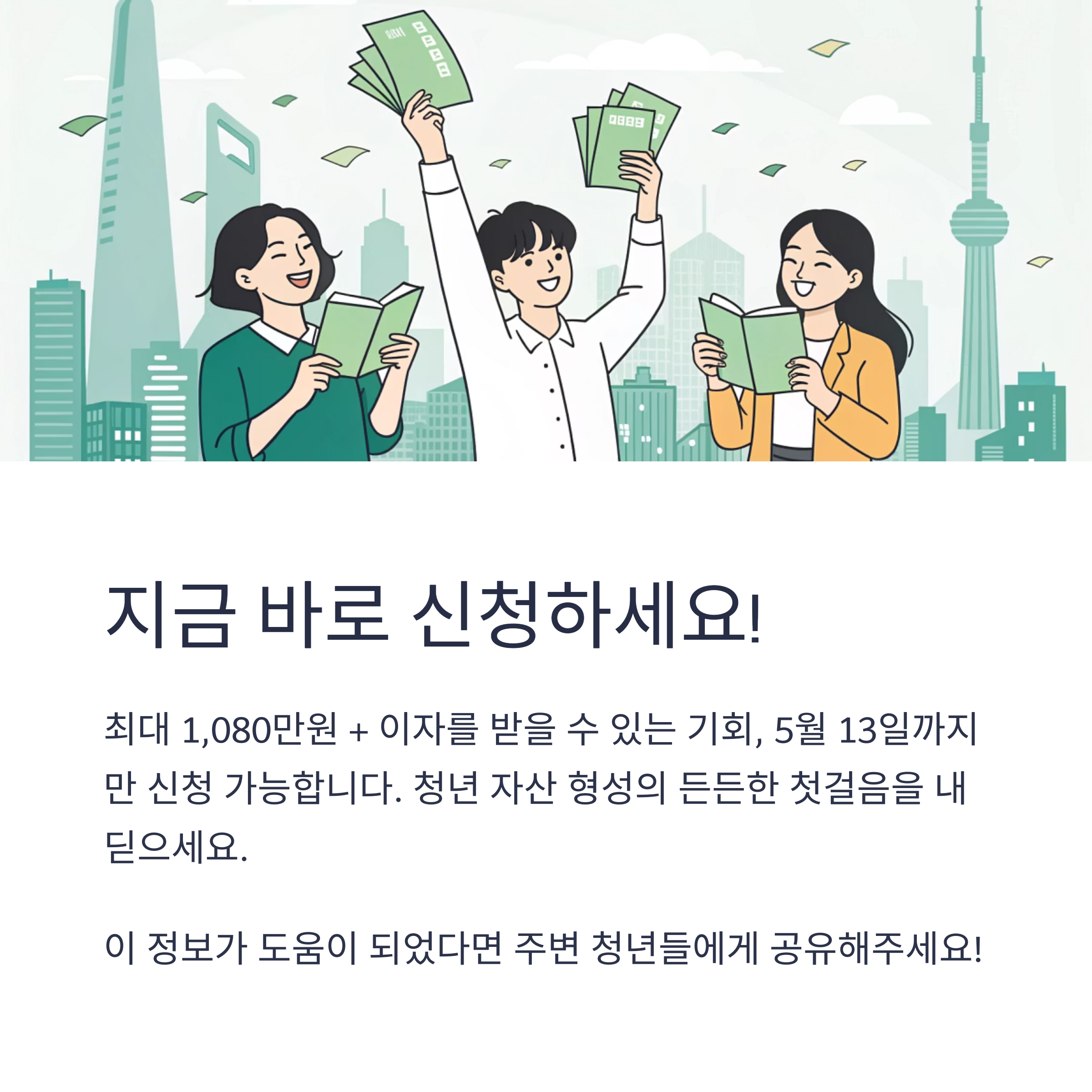 이처럼 자산 형성 기회를 찾는 청년들에게 꼭 필요한 제도입니다.