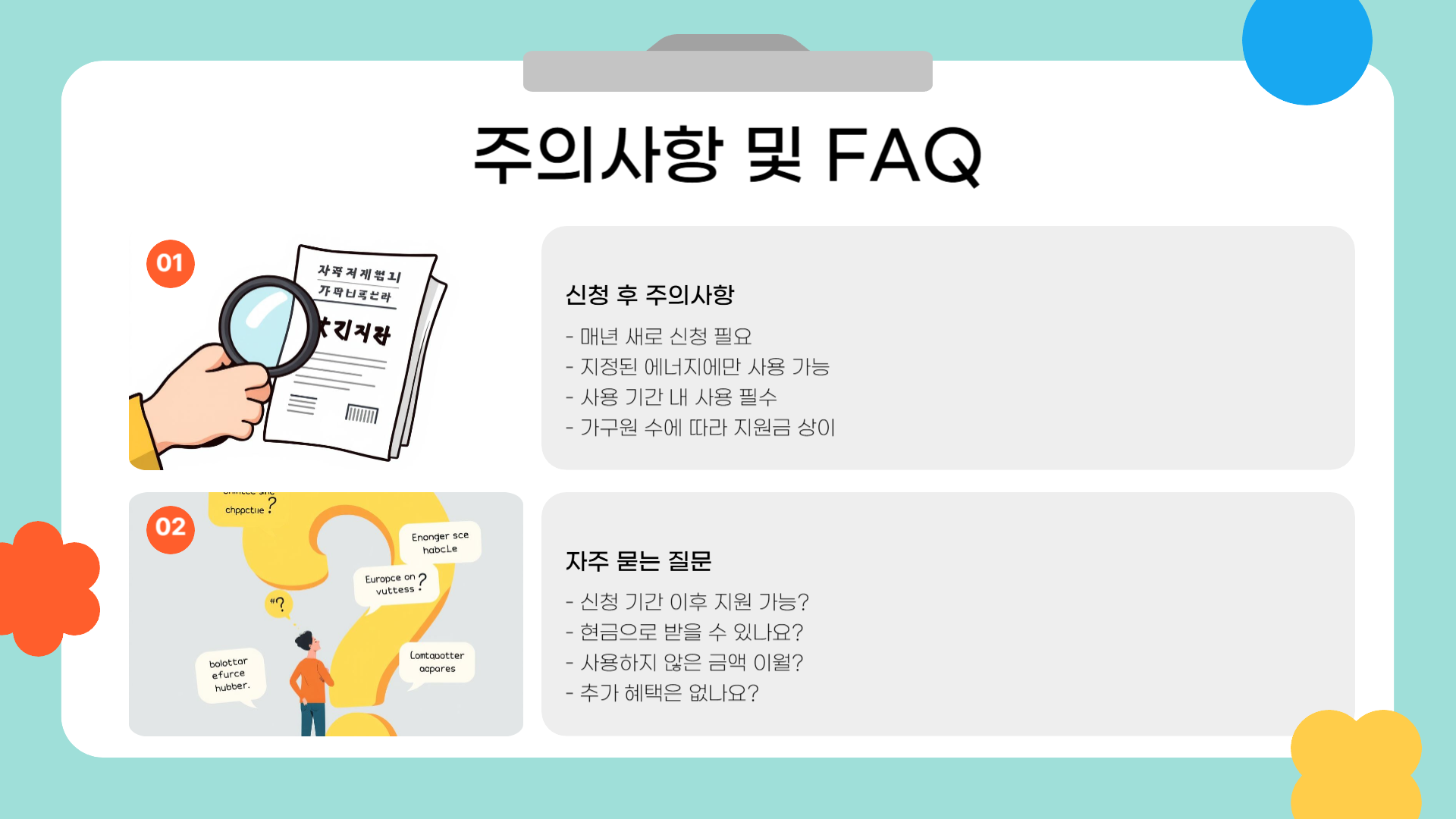 에너지 바우처는 매년 새로 신청해야 합니다. 자동으로 갱신되지 않으니, 신청 기간을 놓치지 않도록 주의하세요.