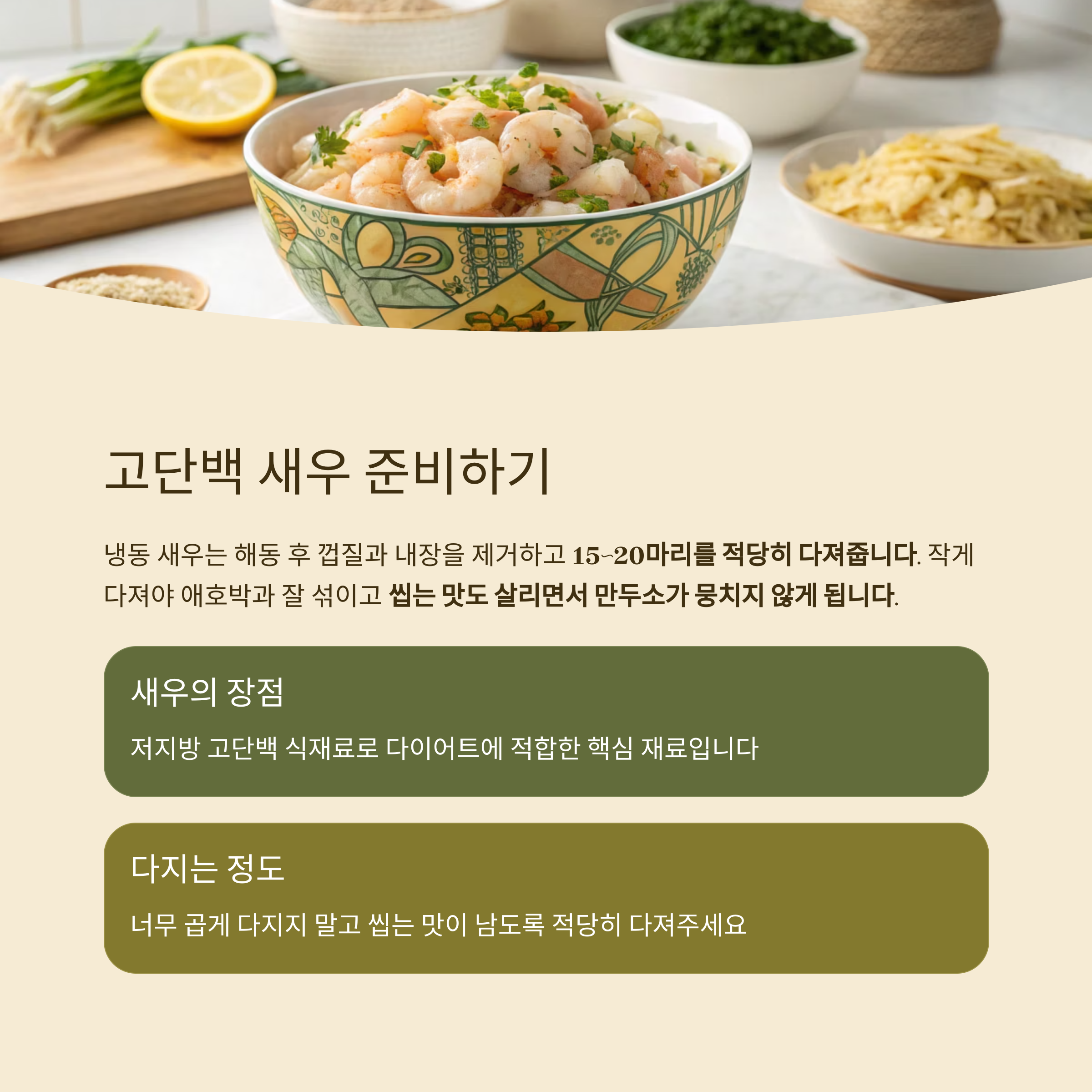 새우는 저지방 고단백 식재료로 다이어트에 적합한 핵심 재료입니다.