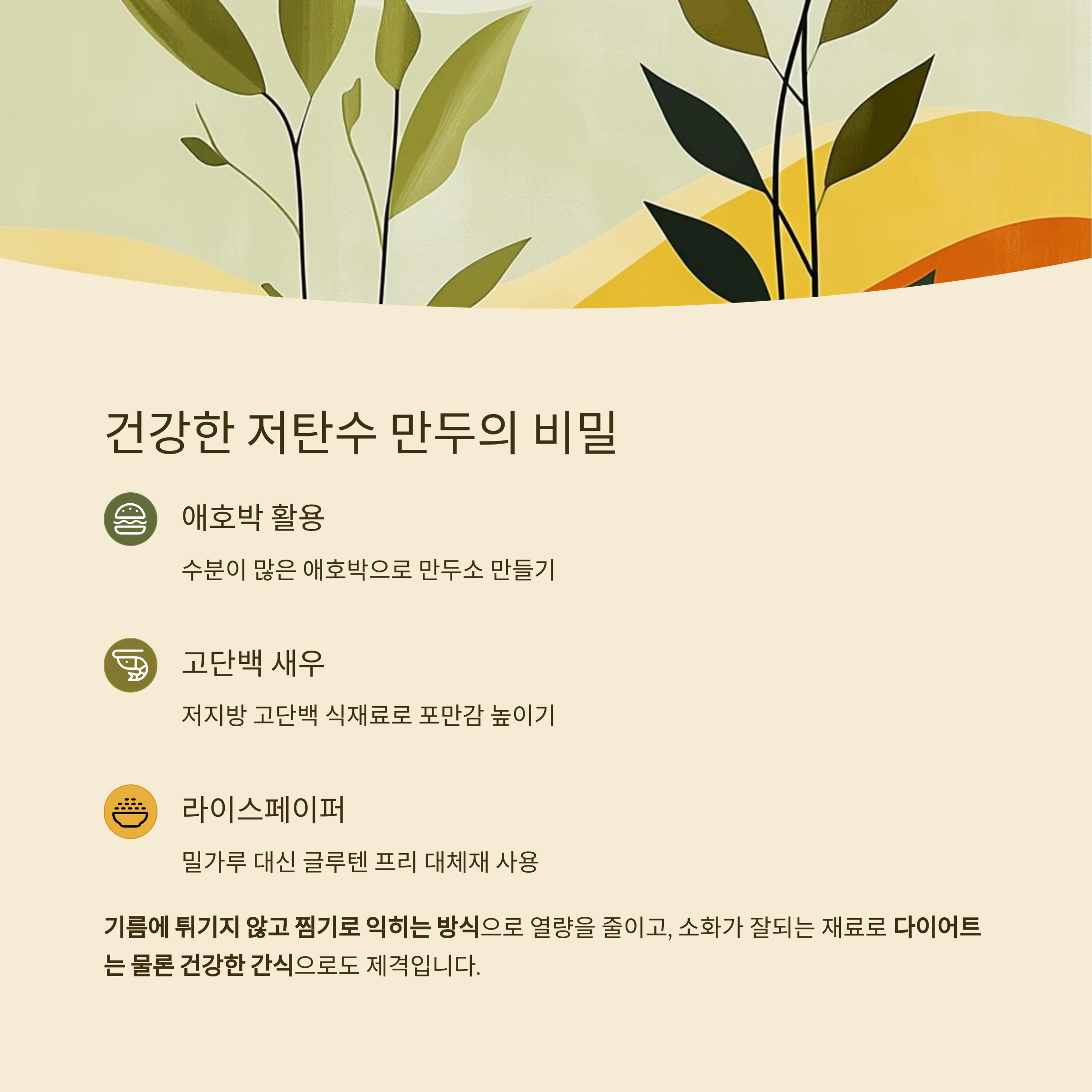 기름에 튀기지 않고 찜기로 익히는 방식으로 열량을 줄이고,