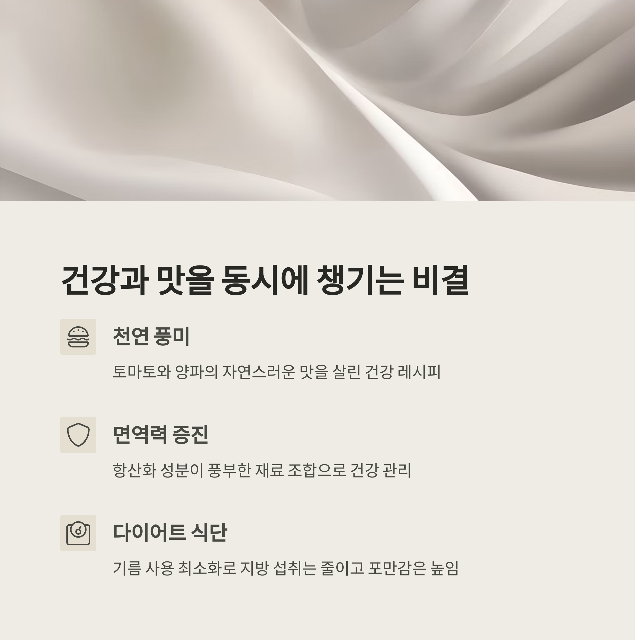 이 요리는 토마토와 양파의 천연 풍미를 살린 건강 레시피로