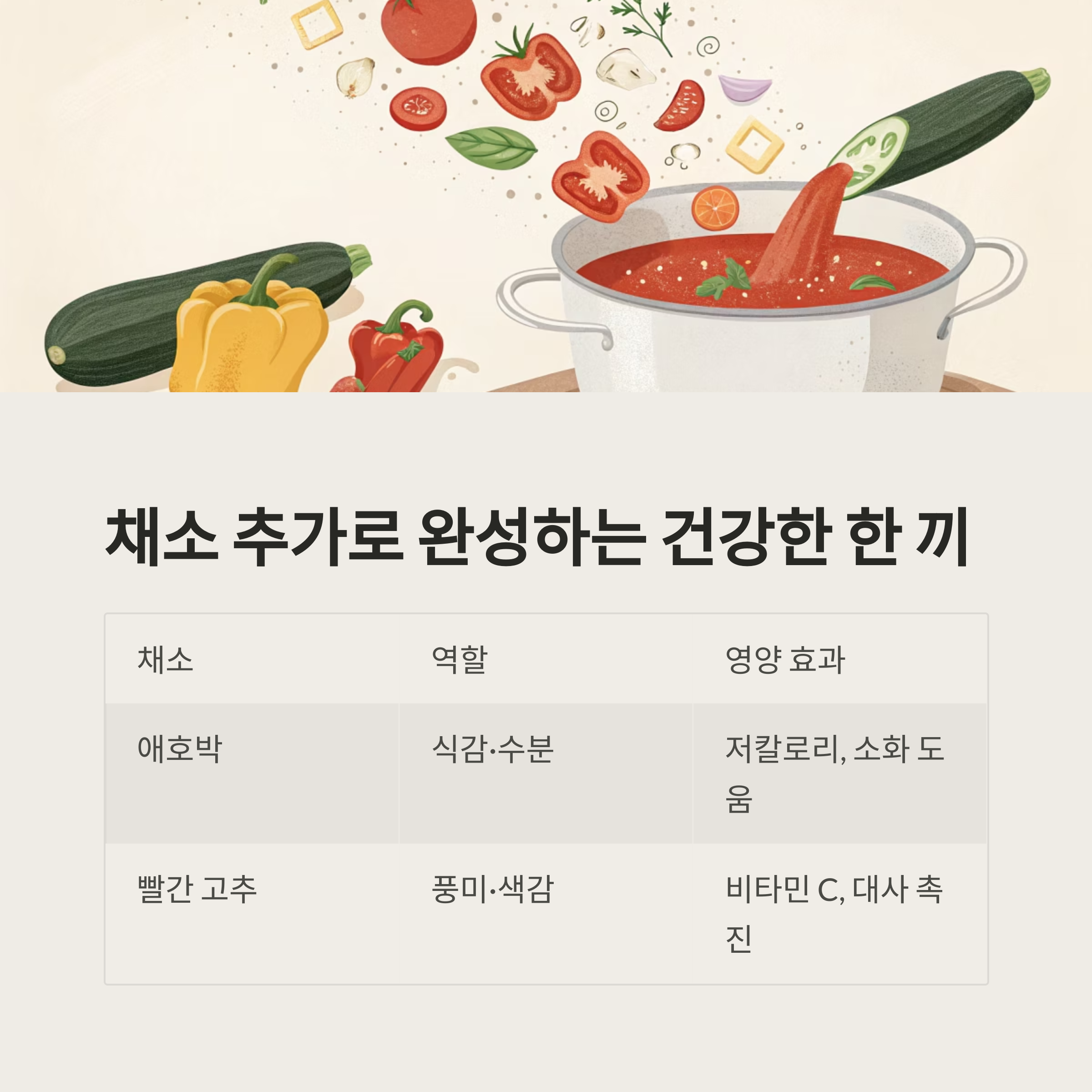 | 애호박 | 식감·수분 | 저칼로리, 소화 도움 |