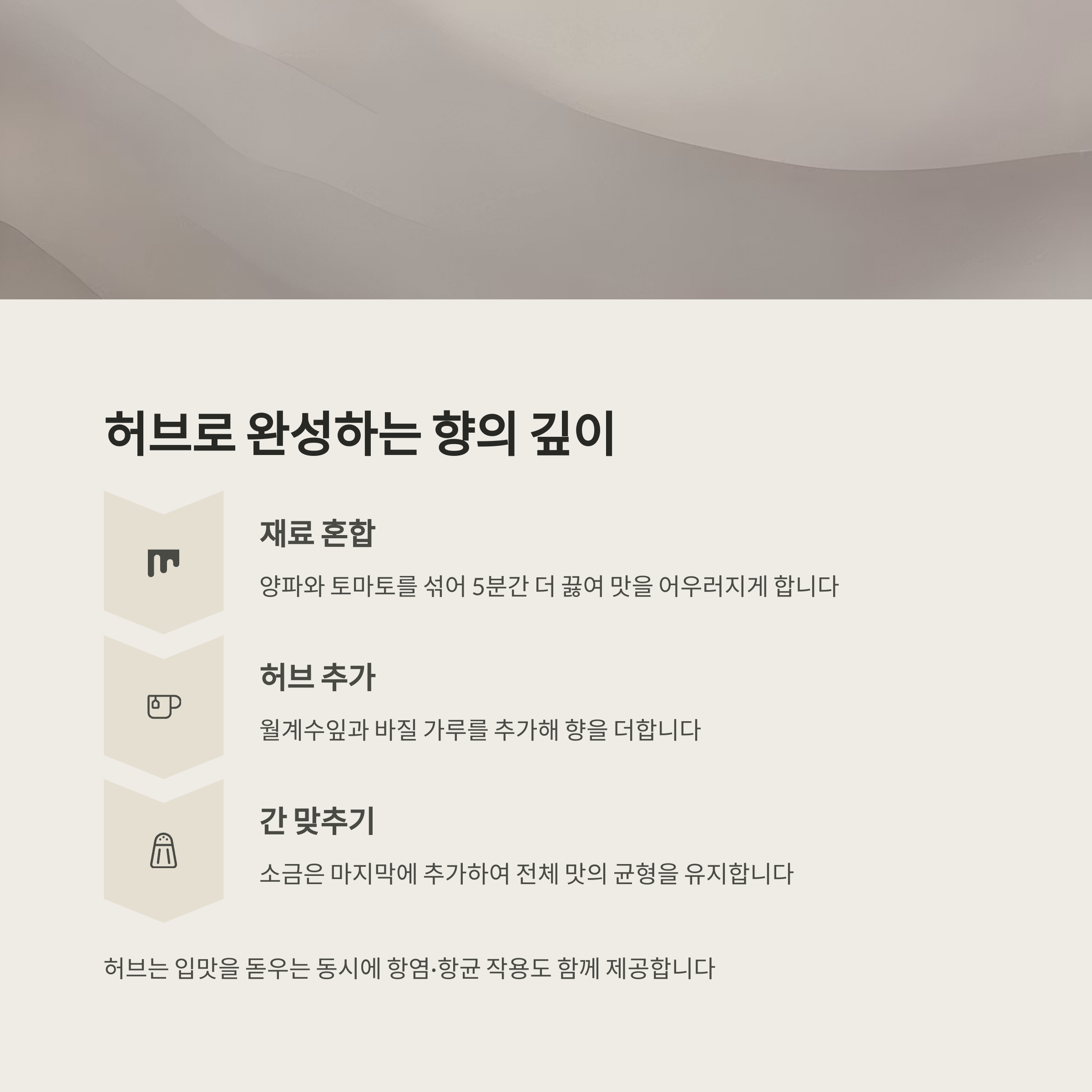 양파와 토마토의 조화, 허브로 완성하는 향의 깊이