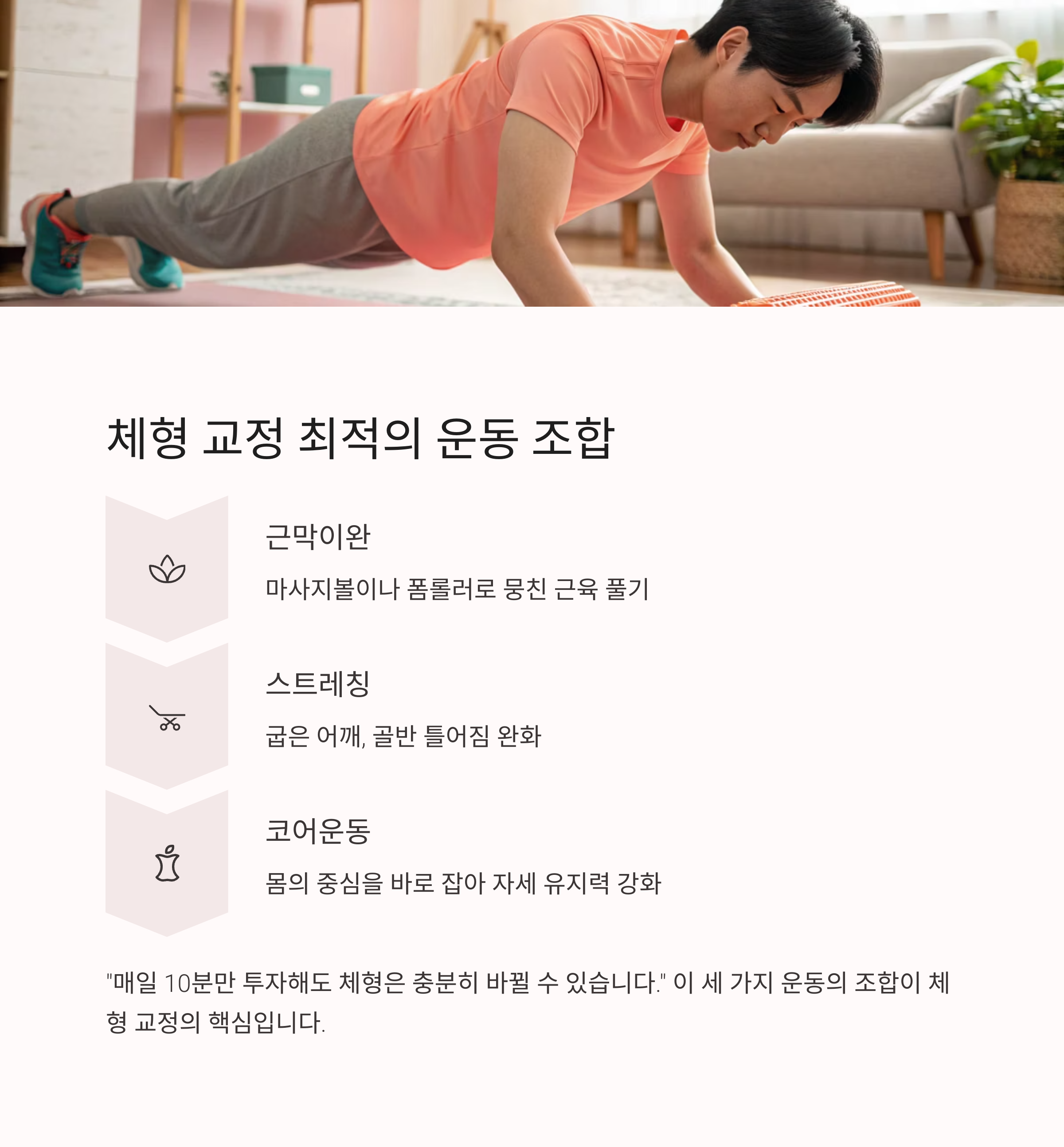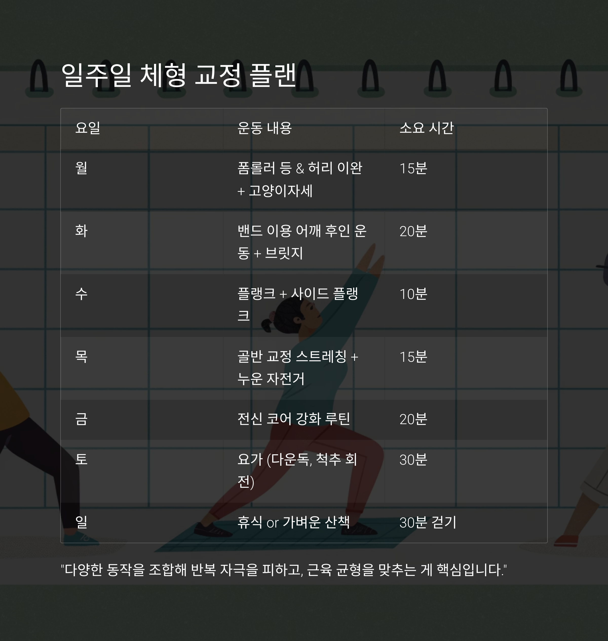 ▶ 하루 루틴 속 체형 교정 실천 예시
