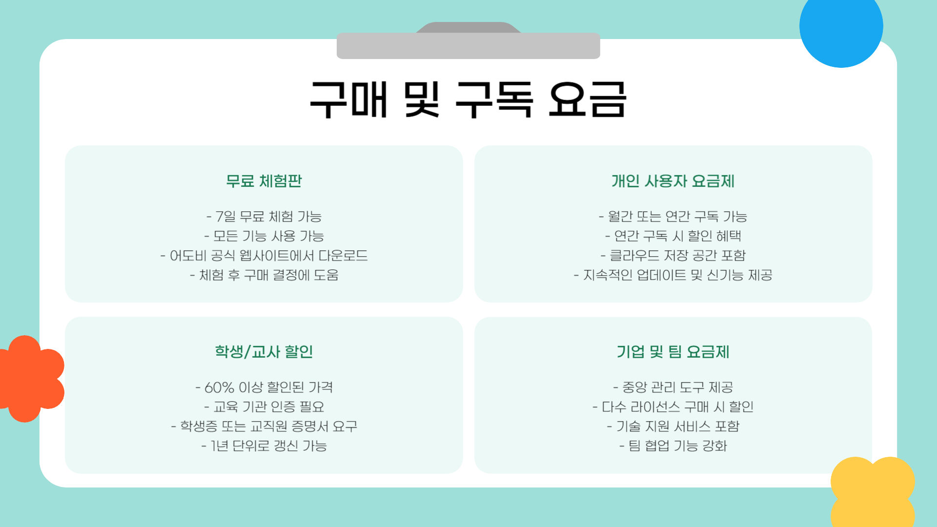 학생/교사 할인 | 교육용 라이선스를 통해 60% 이상 할인된 가격으로 이용 가능합니다. |