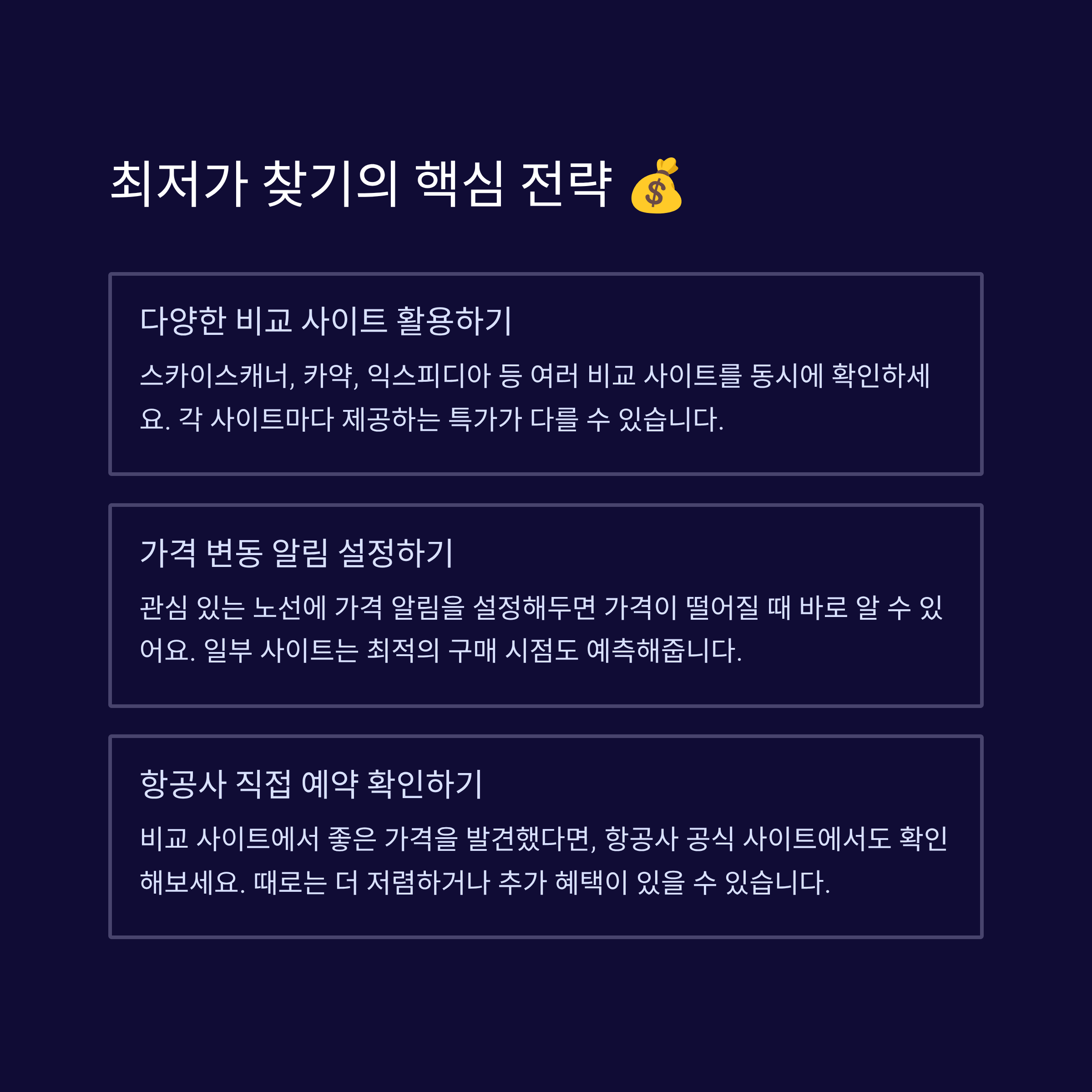 이제부터 항공권 최저가 구매를 위한 구체적인 방법들을 하나씩 살펴보겠습니다.
