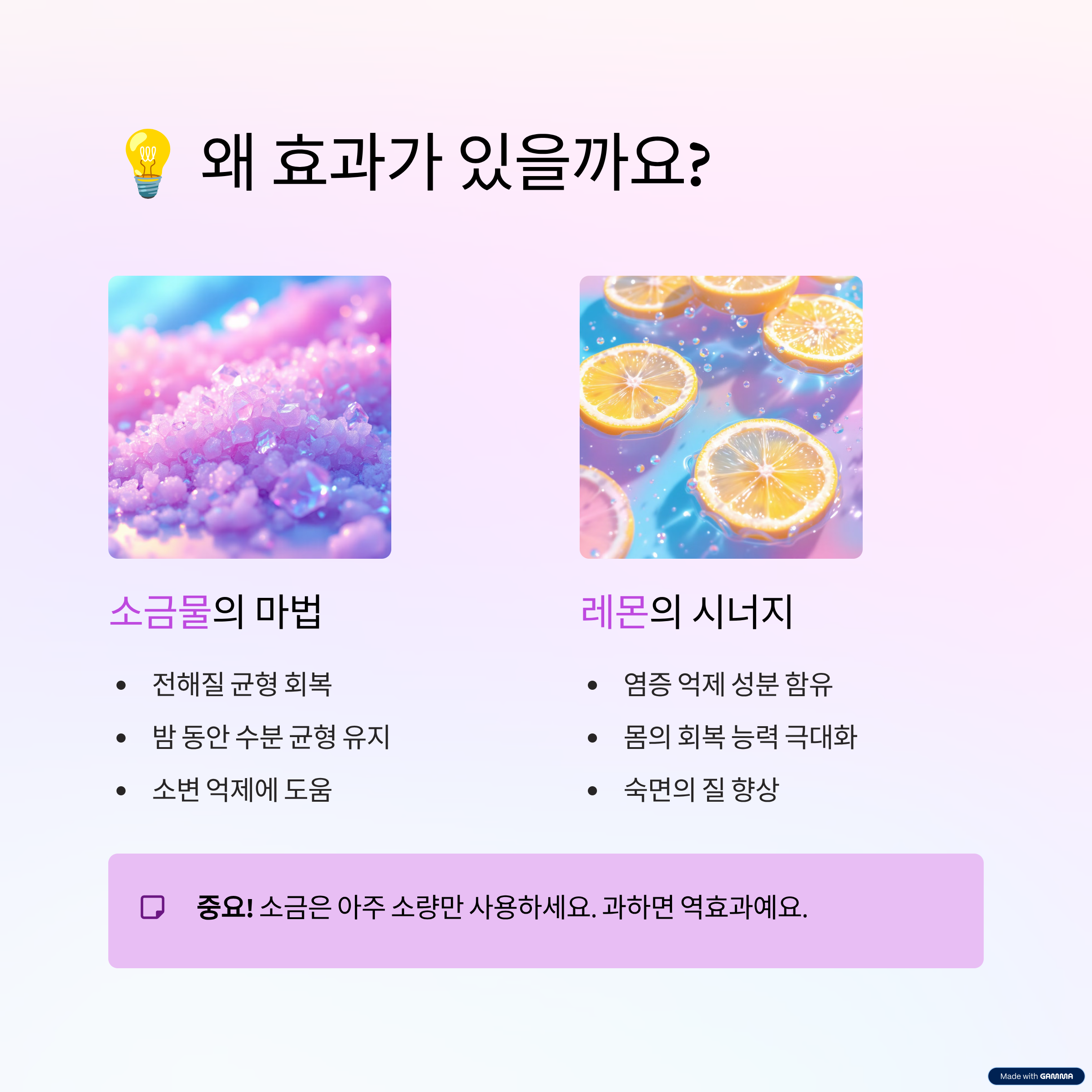 이 방법의 핵심은 잠자리에 들기 전, 우리 몸의 수분과 전해질 균형을 최적의 상태로 맞추는 데 있습니다.