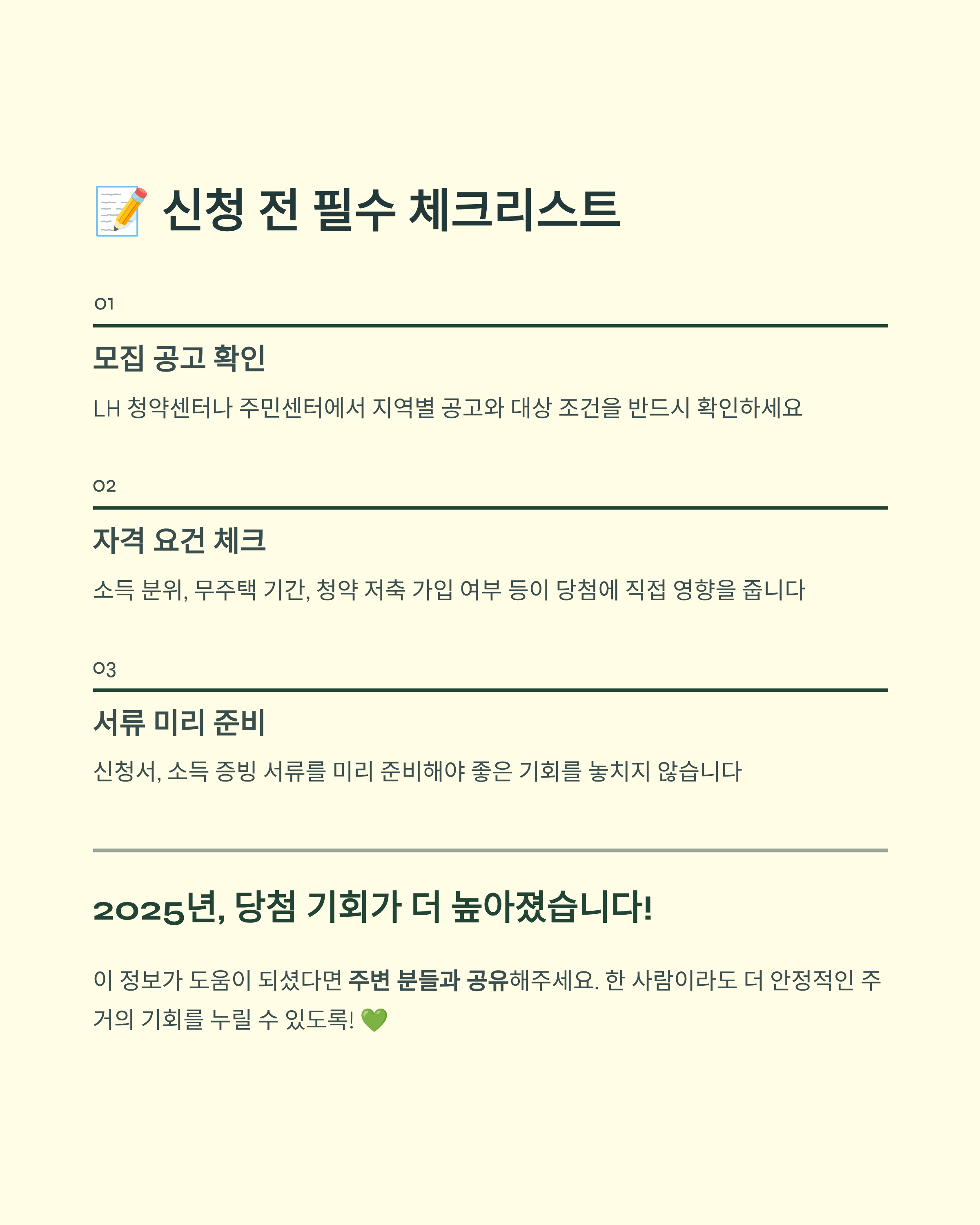 - 자산, 소득, 무주택 기준을 꼼꼼히 체크하세요!