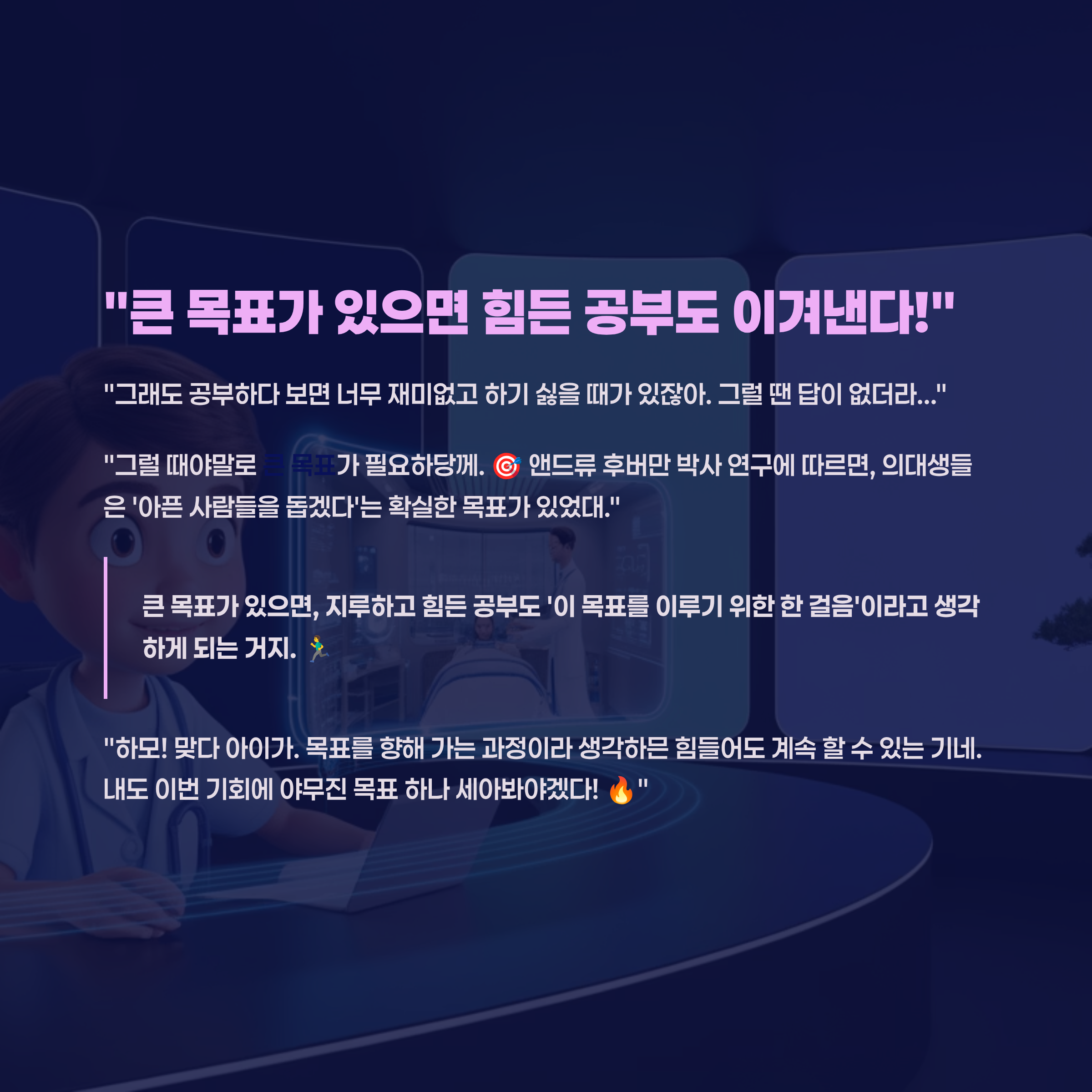 이런 큰 목표가 있으면, 지루하고 힘든 공부도