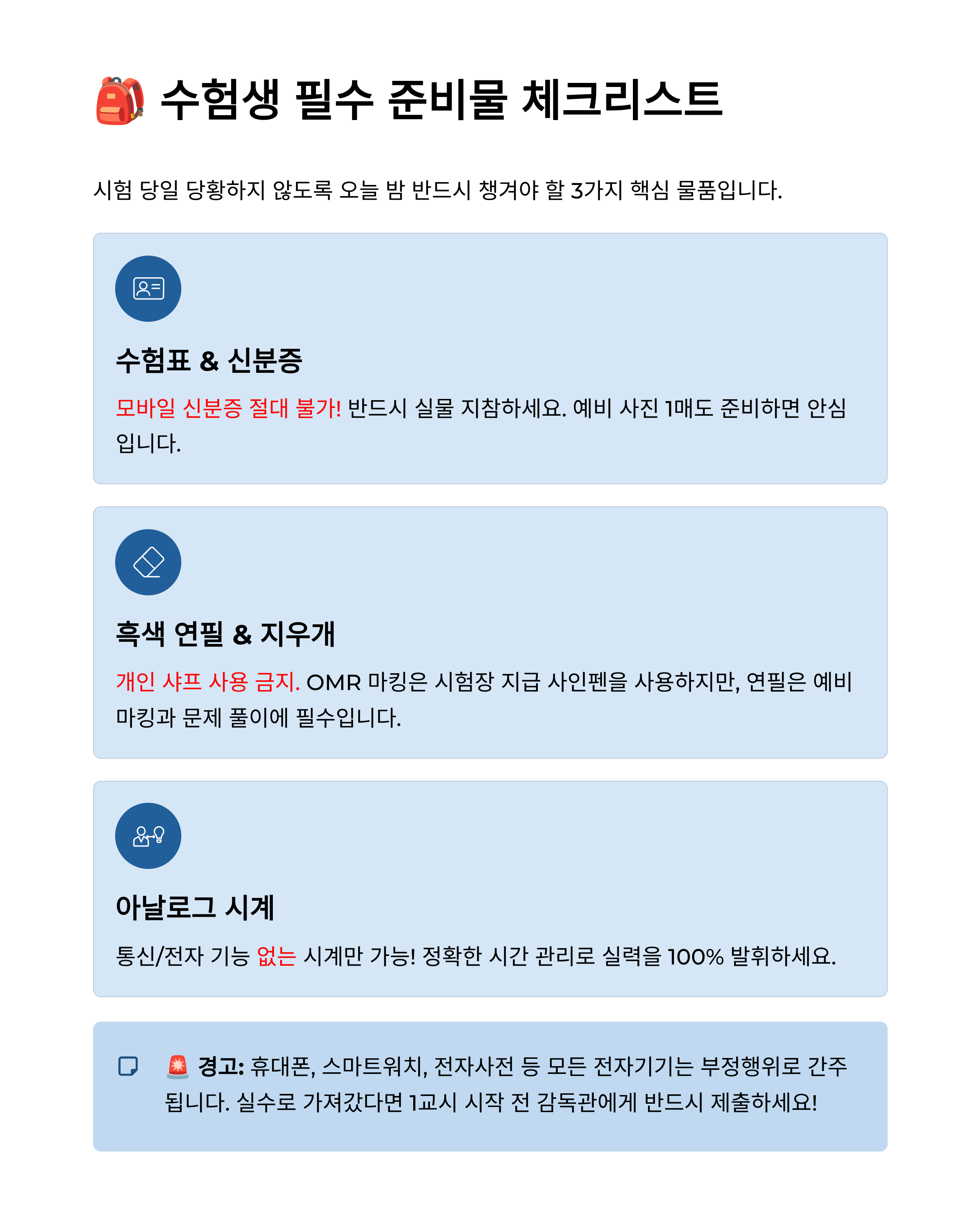 🎒 수험생: 오늘 밤 필수 준비물 체크!